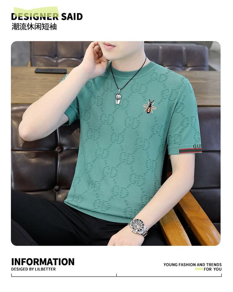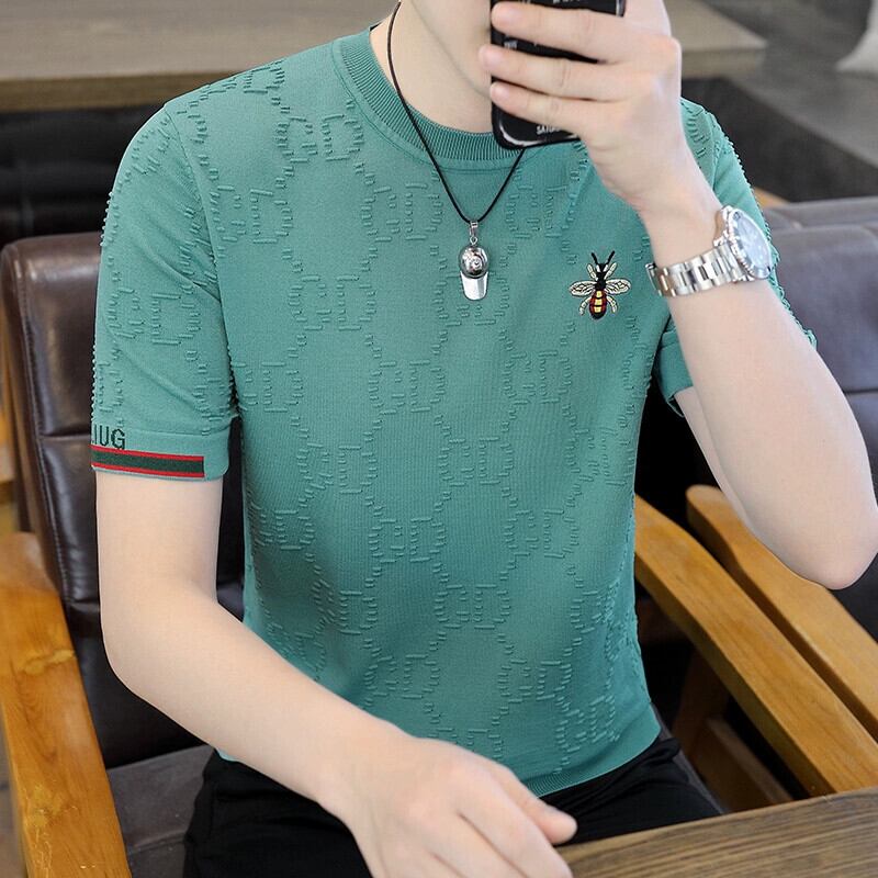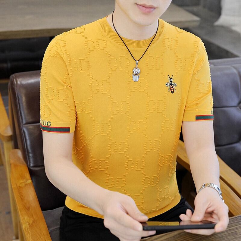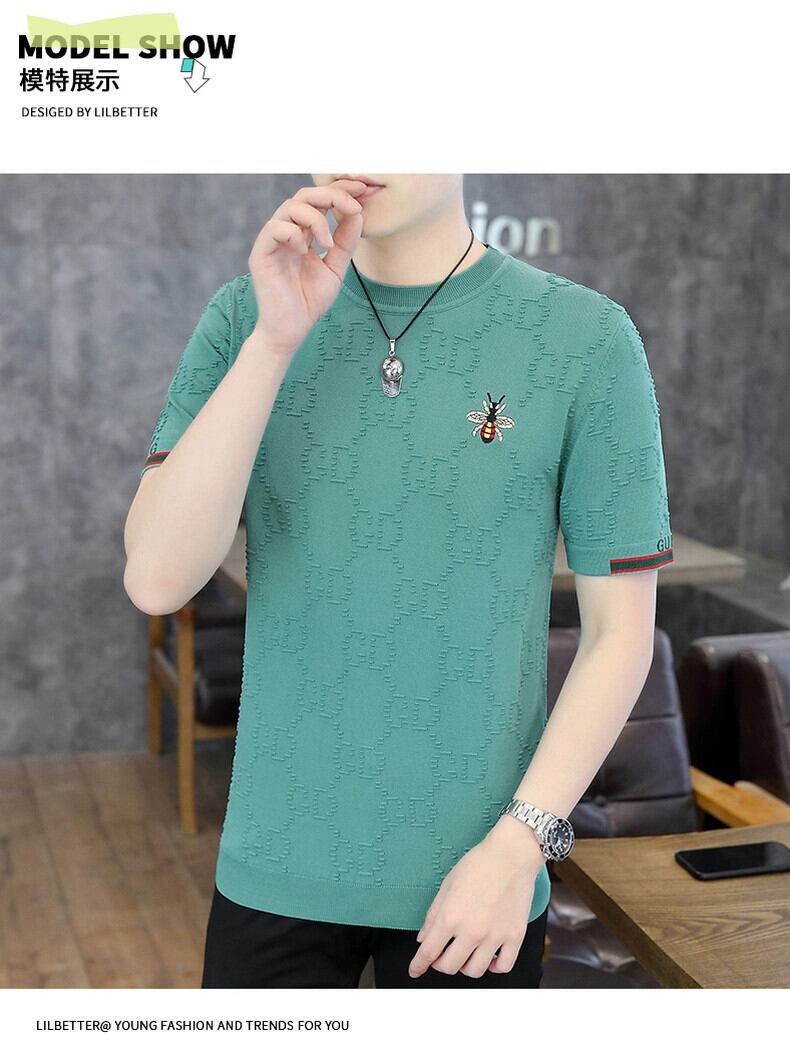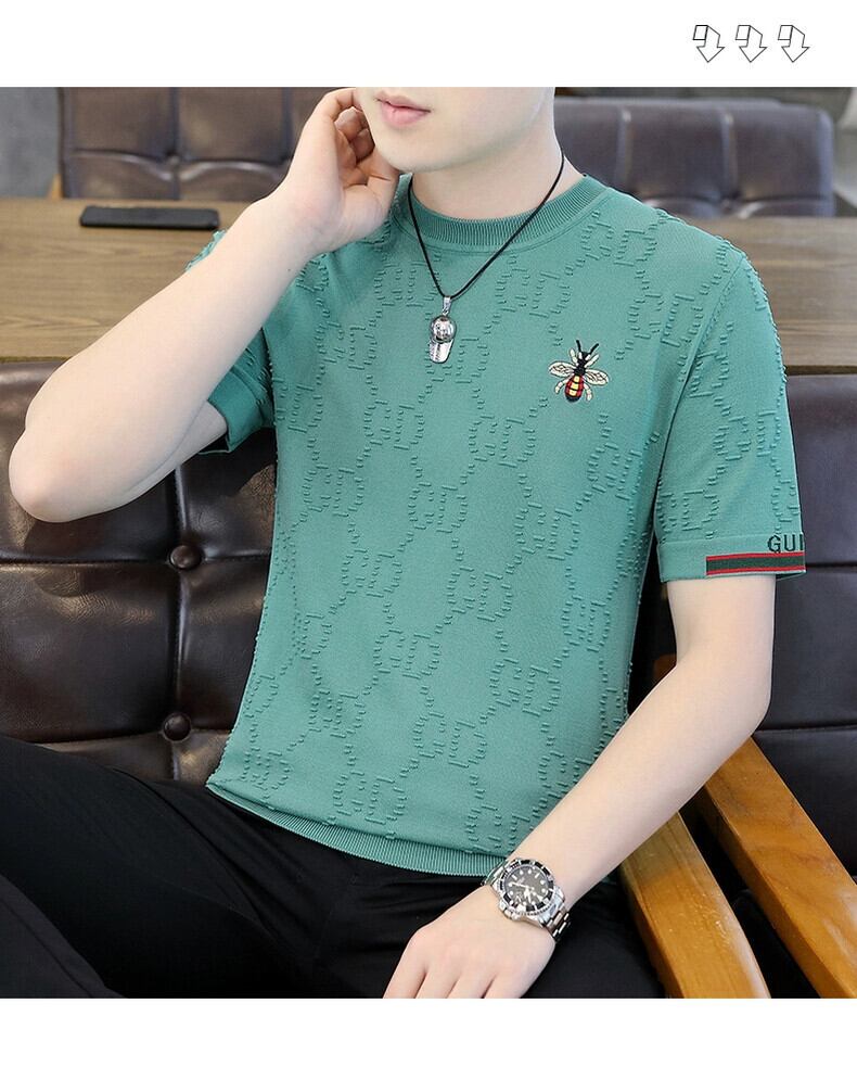 タイドブランド ヨーロッパ雑貨 重工業 刺繍 ハチ メンズ Tシャツ 夏 薄手 半袖 セーター 五分袖 Tシャツ ノンアイロン サマー 夏物 ヨーロピアン undao63472479216