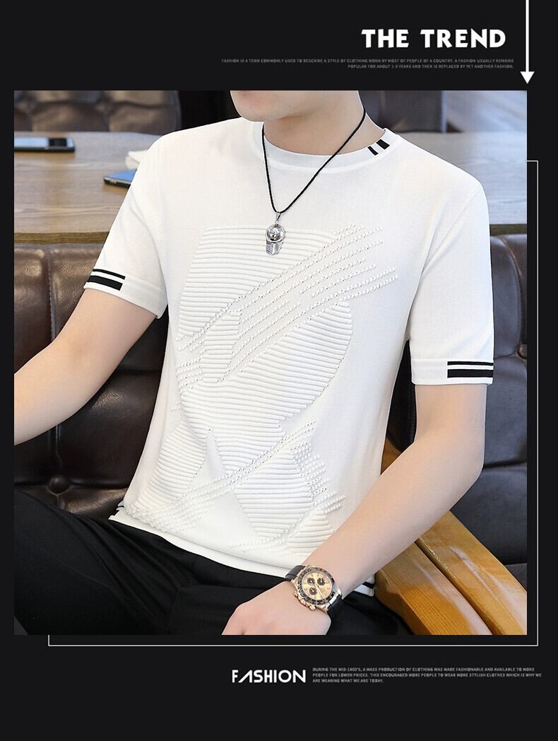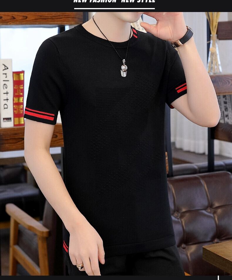 ヨーロッパステーションアイスシルク Tシャツメンズ半袖トップ服潮ブランドトレンディなハイエンドニット半袖メンズ夏薄手の T サマー 夏物 ヨーロピアン undao17837522113