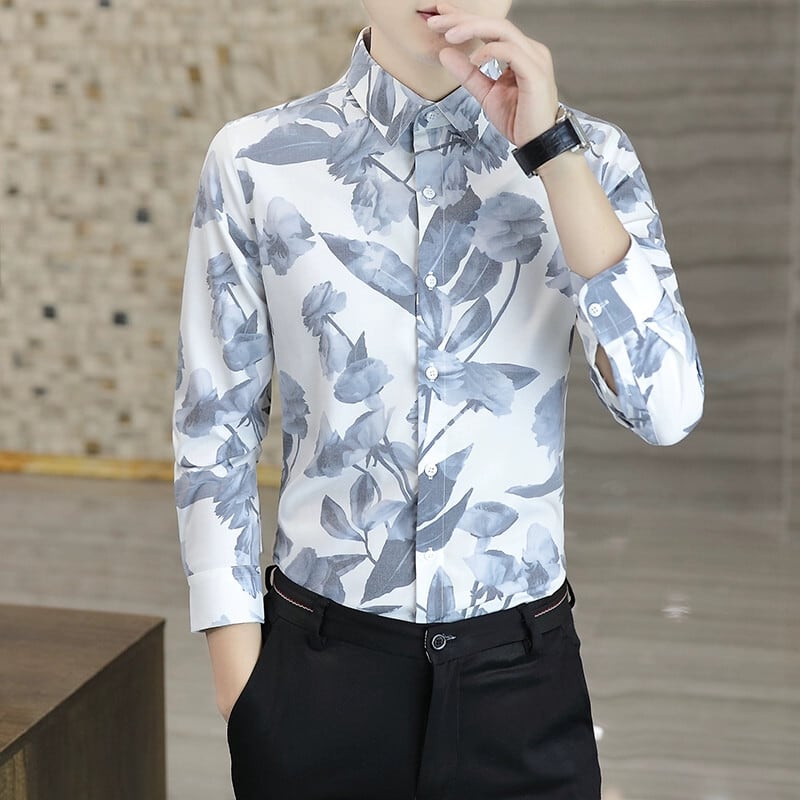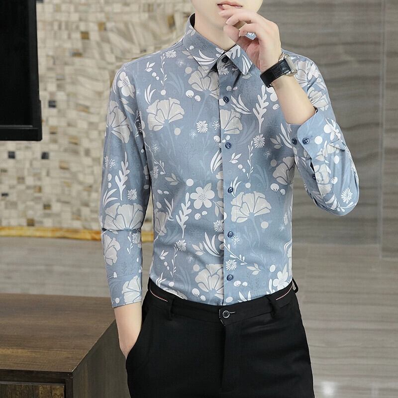 2023 春と秋の新しいトレンドブランドメンズプリントシャツメンズ長袖トレンディなハンサムカジュアルシャツ個性インチシャツ ロング スプリング 春物 オータム 秋物 undao37309450024