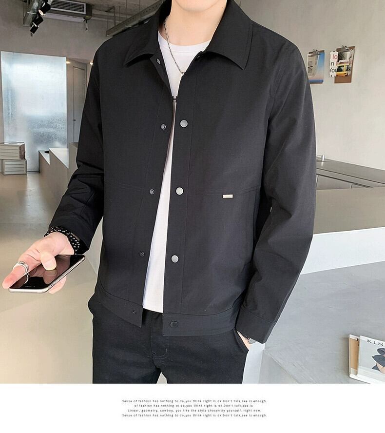 作業着ジャケットメンズ春秋スリムフィットラペルカジュアル無地トップ服スタイルトレンディなハンサムなオールマッチコート スプリング 春物 オータム 秋物 ソリッドカラー undao18586351595