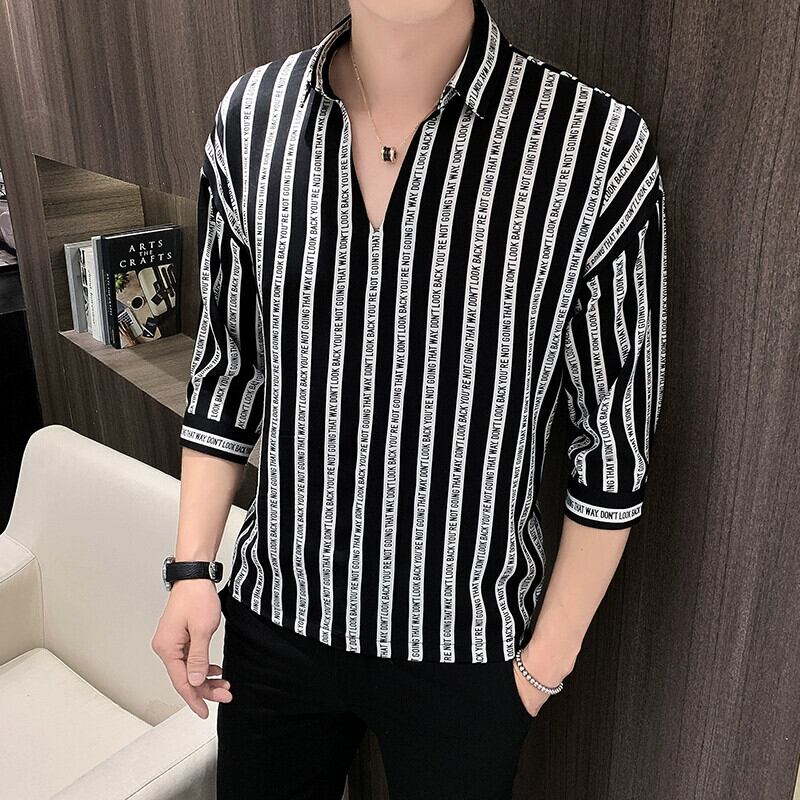 バージョントレンディな半袖シャツヘアスタイリスト自己修養パーソナリティカラー七分袖シャツメンズカジュアル服夏 サマー 夏物 undao72132391278
