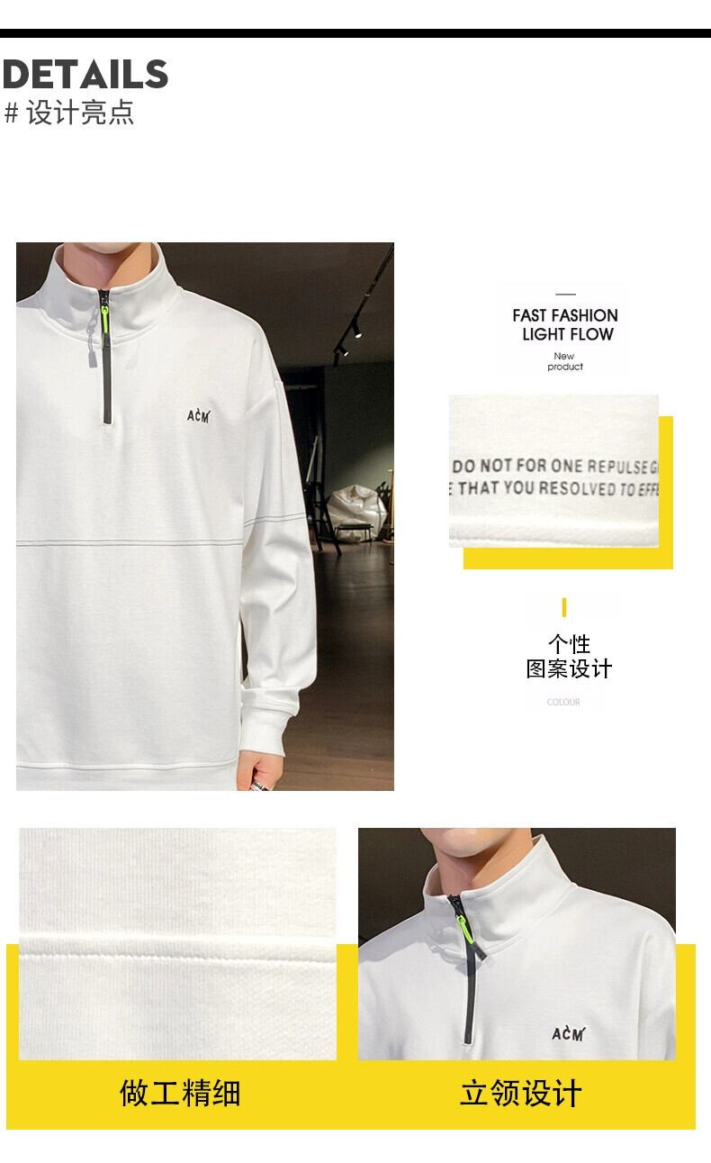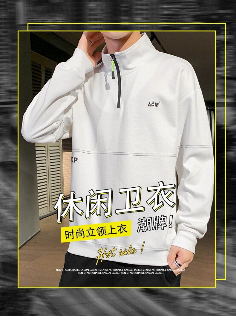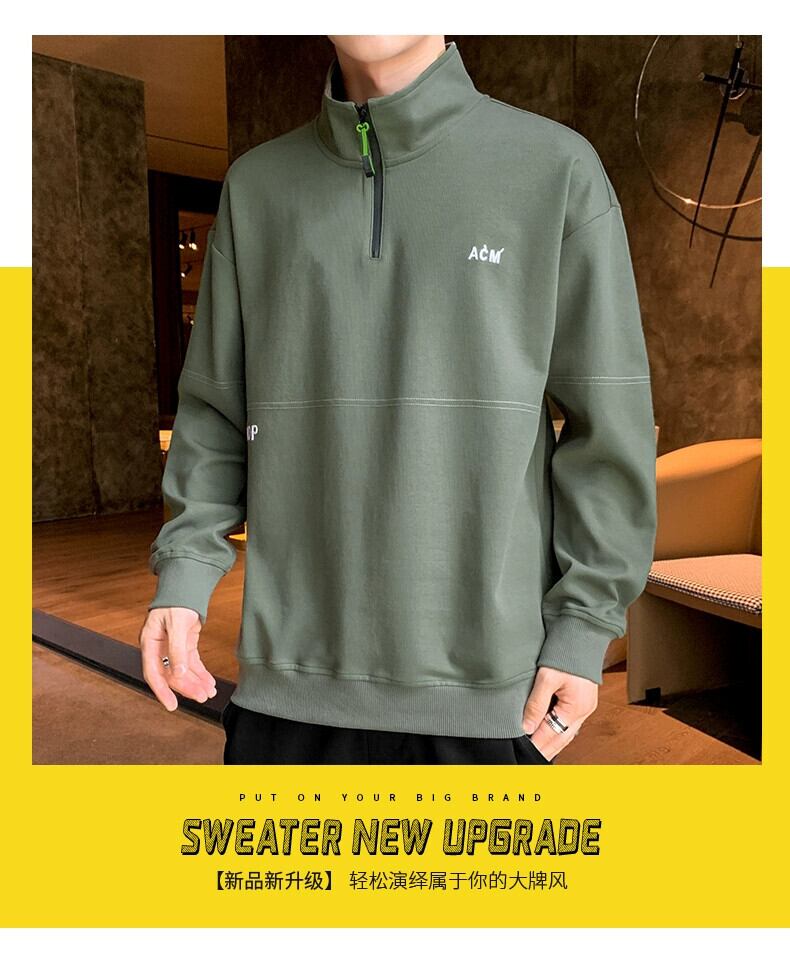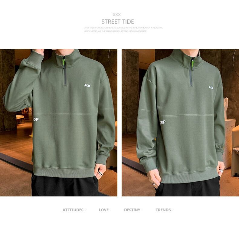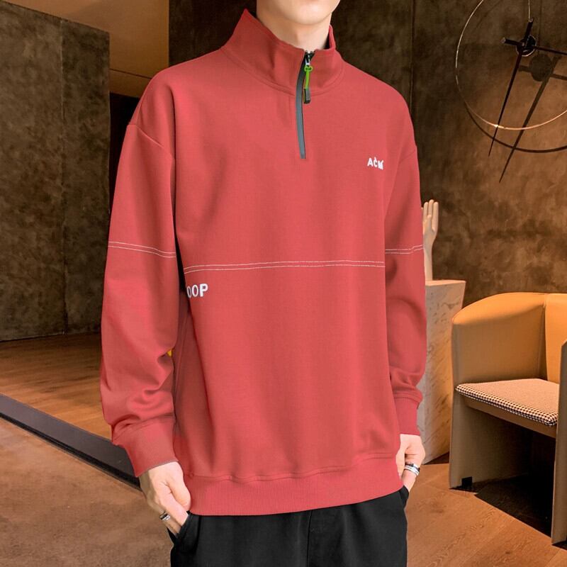 春と秋のドレススタンドカラー長袖 Tシャツメンズハーフジッパーカラールーズセータープラスベルベット厚手のプルオーバーシャツ ロング スプリング 春物 オータム 秋物 undao31002379187