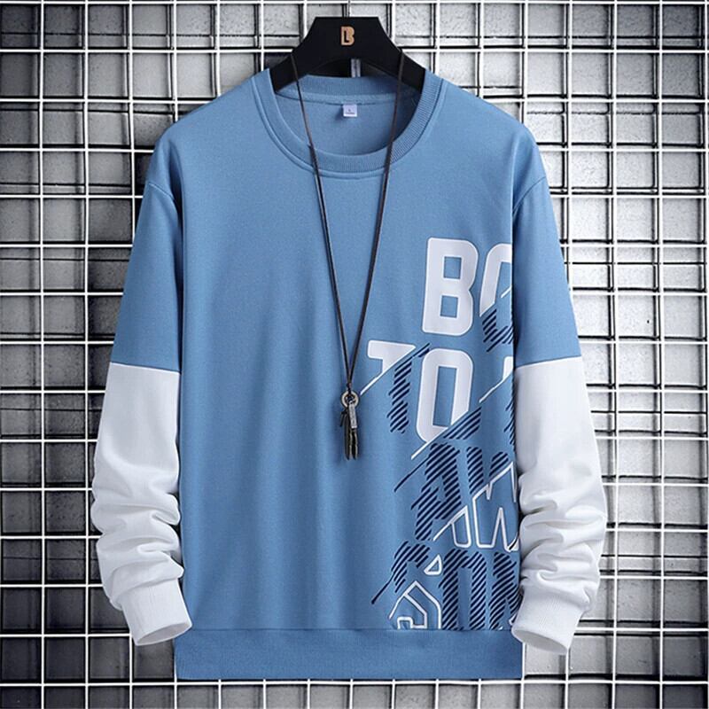 若者の大きいサイズの長袖セーターメンズ春夏プラス太くてルーズなラウンドネックTシャツ太った潮ブランドボトリングシャツ ロング 大きめサイズ スプリング 春物 サマー 夏物 Oネック undao72377923631