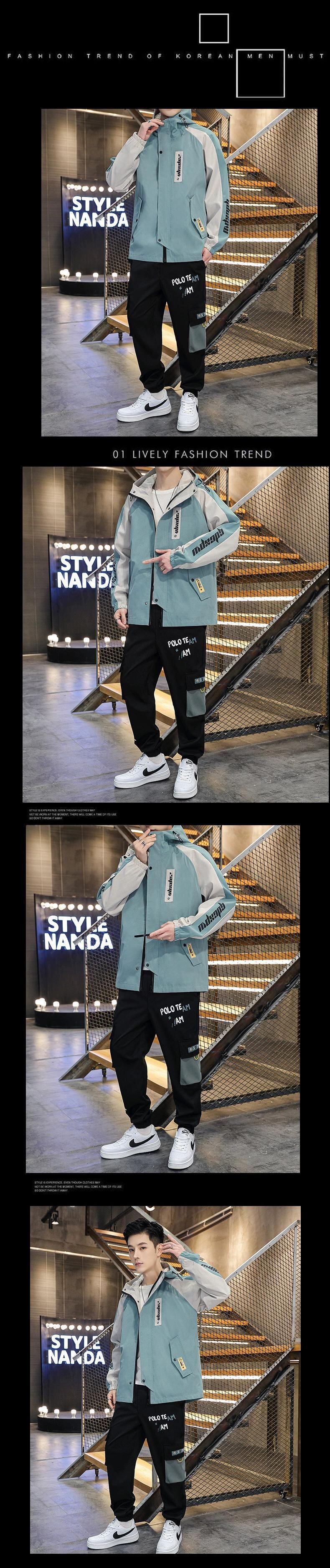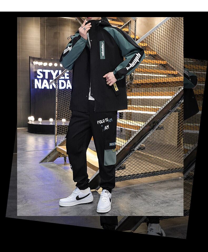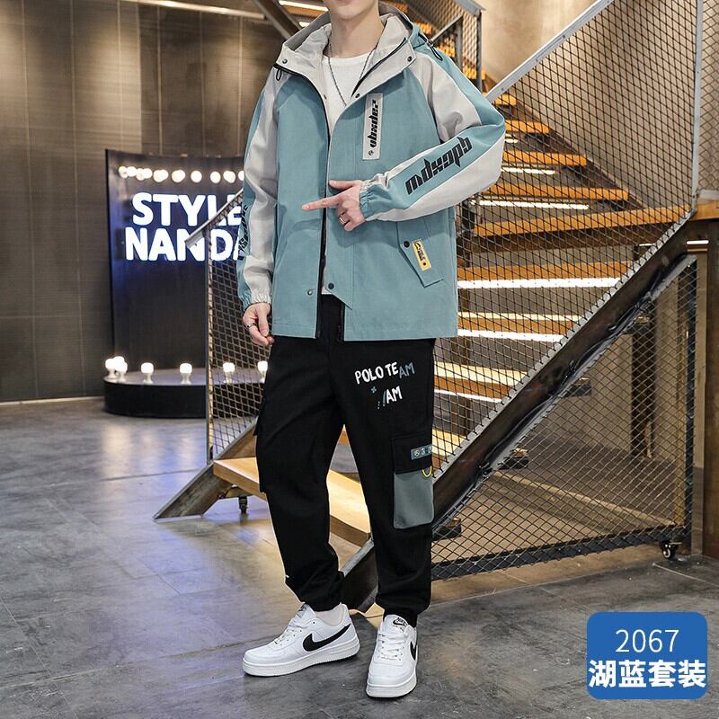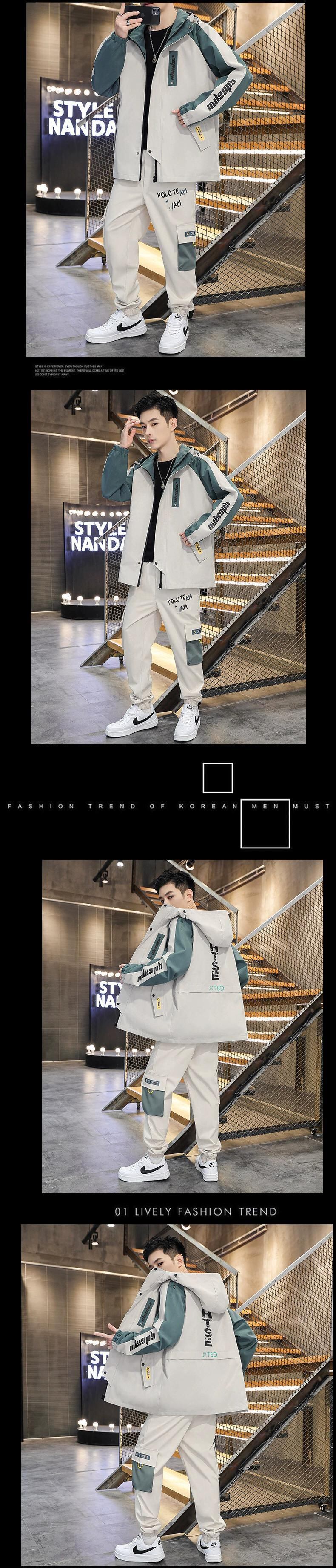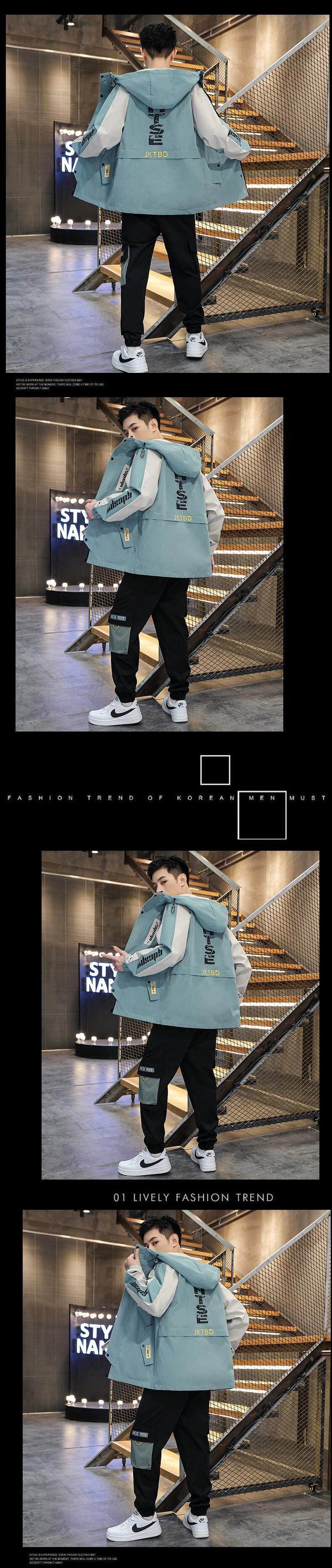 2023 新しいトレンディな男子学生スーツハンサムな服のセットツーリングジャケットフード付きコート春と秋 スプリング 春物 オータム 秋物 undao77452453701