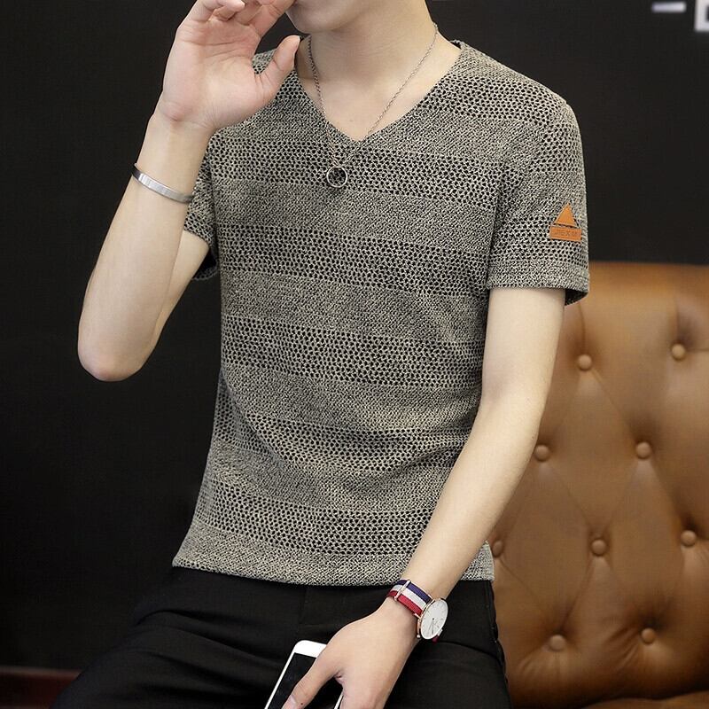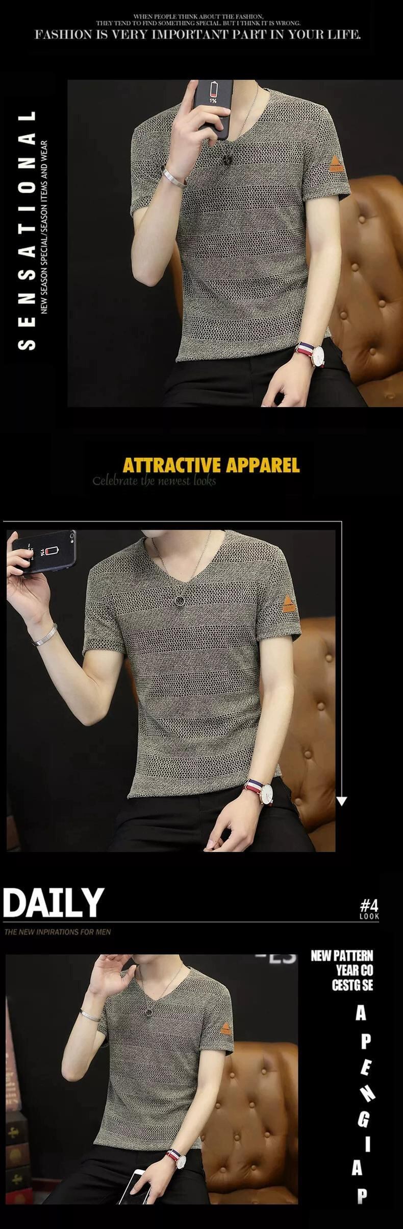メンズアイスシルクニット半袖Tシャツメンズ2023新夏バージョンのスリムフィット半袖ボディキルト紳士服 サマー 夏物 undao70335162543
