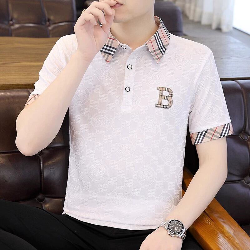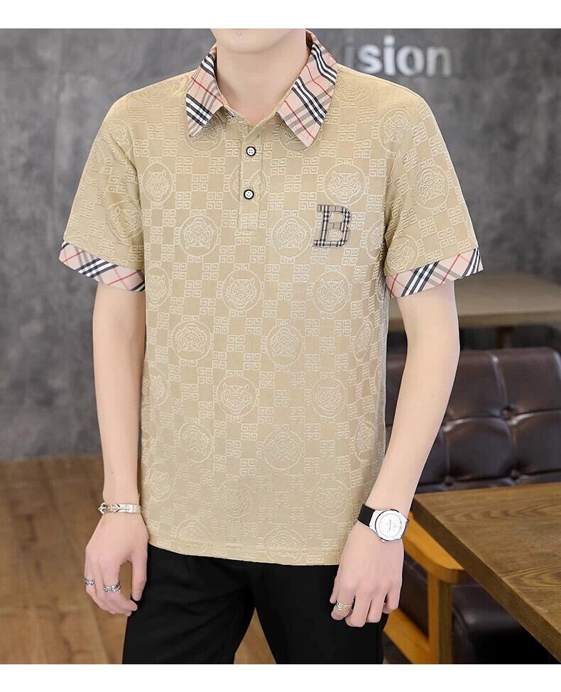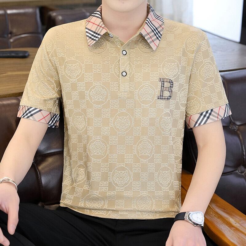 アイスシルク半袖Tシャツメンズ夏のトレンドハイエンド刺繍ポールポロシャツトレンドブランドラペル半袖トップス服 サマー 夏物 undao65169994298