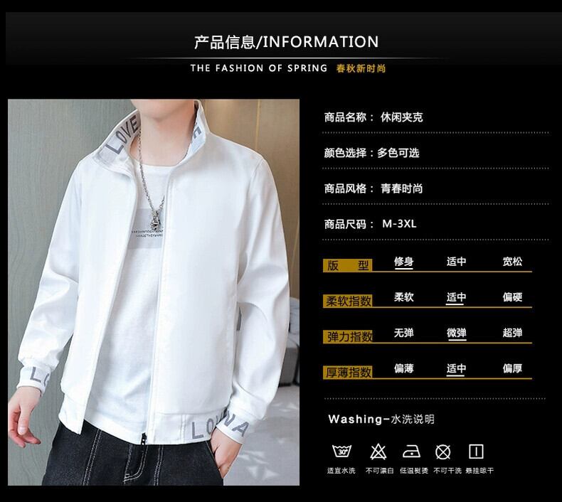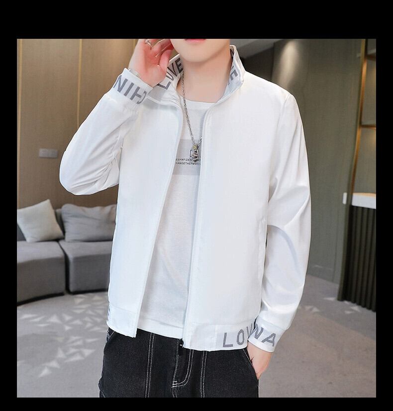 2023 メンズスタンドカラーホワイトジャケット春と秋のアウタースタイルトレンディトレンディメンズトップ服 スプリング 春物 オータム 秋物 undao27082078467