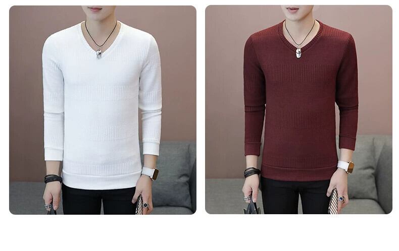 メンズ長袖TシャツトレンディなVネックボトリングシャツ秋と冬のTシャツプラスベルベットの厚手のニット白春と秋の服 ロング ホワイト スプリング 春物 オータム 秋物 ウィンター 冬物 undao75355196036