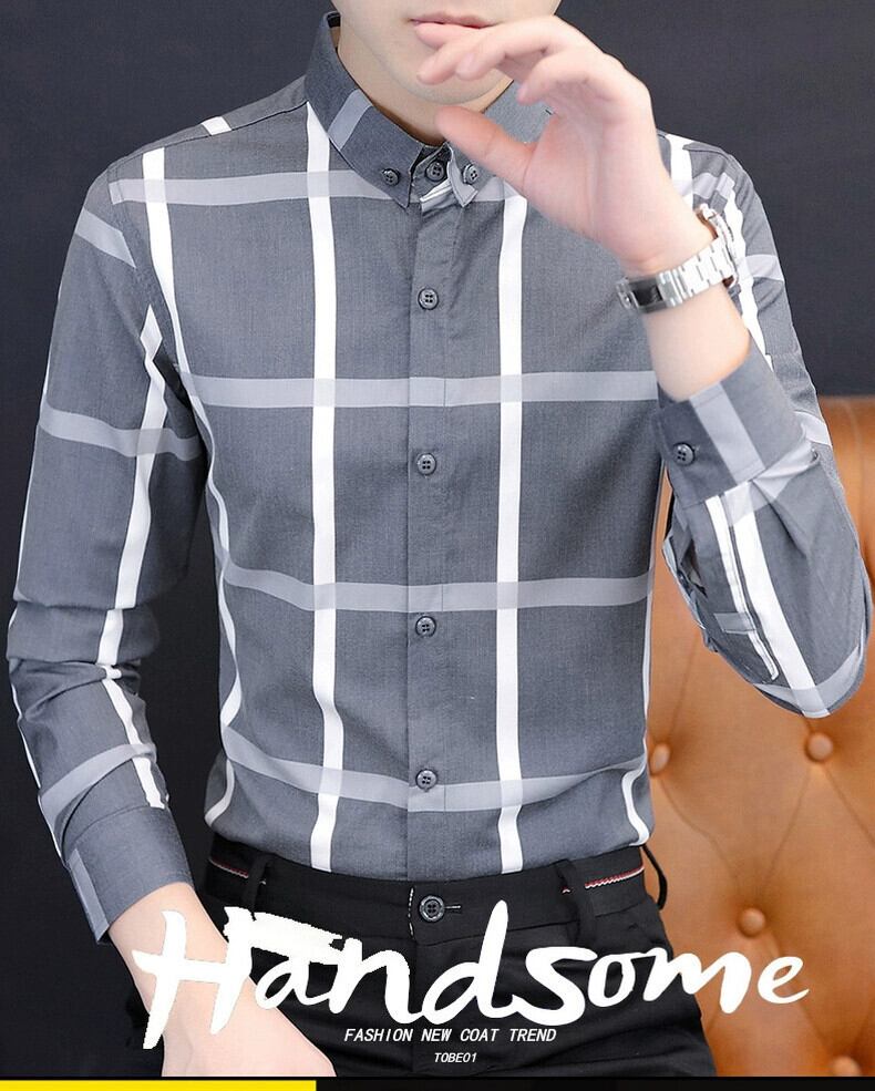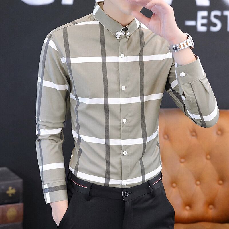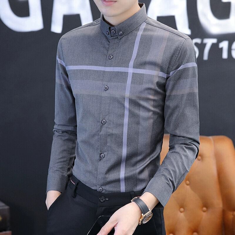 春薄手のシャツメンズ長袖トレンディなスリムシャツ春と秋のドレスストライプビジネス高度なセンスインチシャツ ロング スプリング 春物 オータム 秋物 undao61593647340