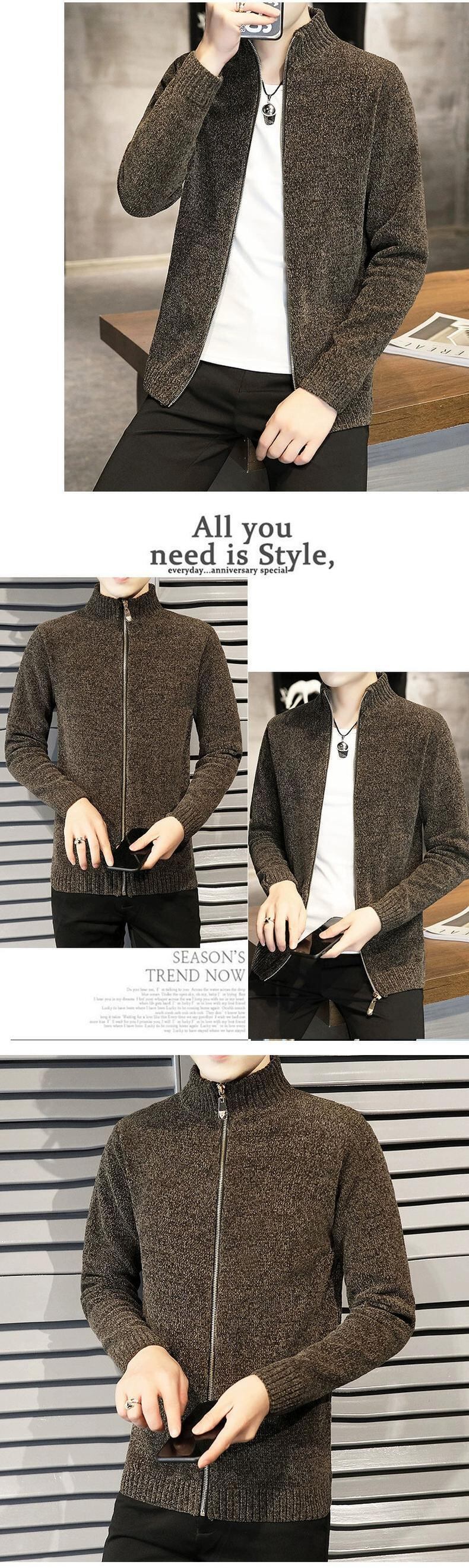 2023 春と秋のメンズカーディガンジャケット薄手のシェニールニットアウタートレンディなメンズジャケット スプリング 春物 オータム 秋物 undao17253004424