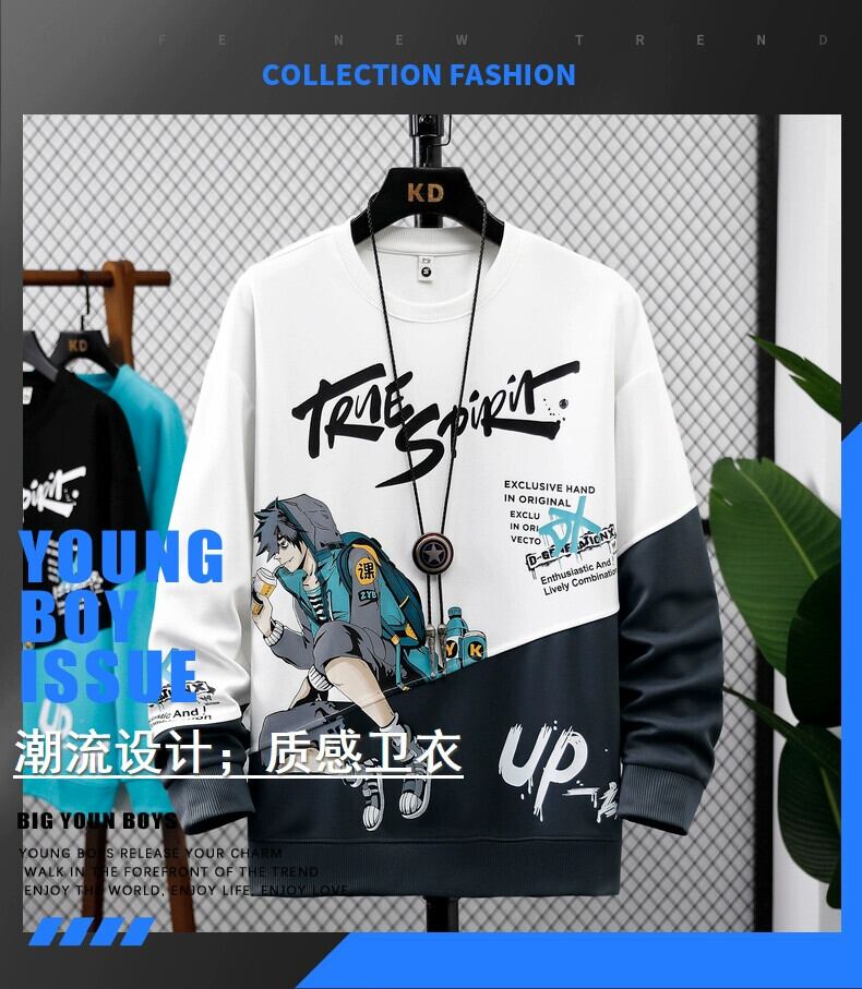 長袖Tシャツメンズ秋冬セータープラスベルベット増粘青春中学生トレンド春秋トップスTシャツ ロング スプリング 春物 オータム 秋物 ウィンター 冬物 undao82473414934
