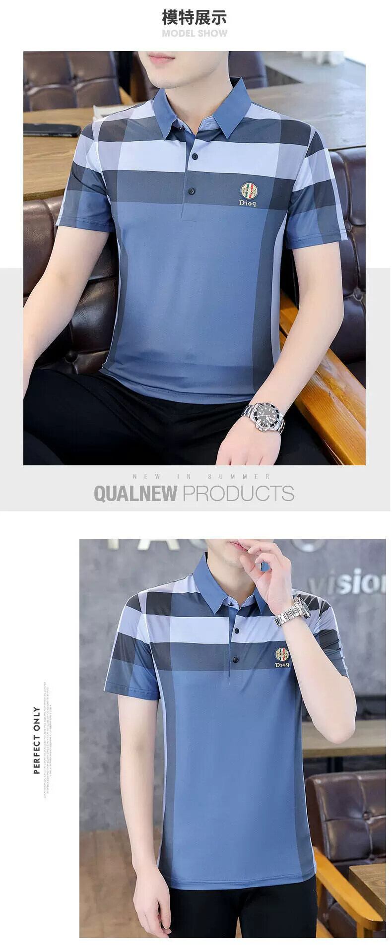 アイスシルクポロシャツメンズ夏の高級ブランド薄手半袖Tシャツ大人安定のメンズシャツ襟トップ サマー 夏物 undao8524086675
