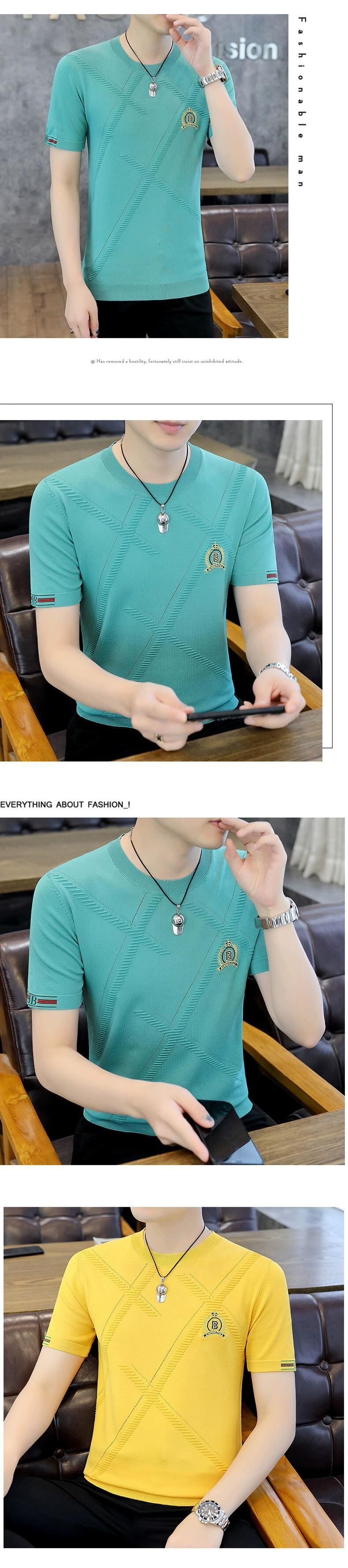 半袖 Tシャツ メンズ 夏 高級アイスシルク 薄手 ニット Tシャツ トレンド ブランド 刺繍 半袖 メンズ カジュアル 夏服 サマー 夏物 undao31153571298