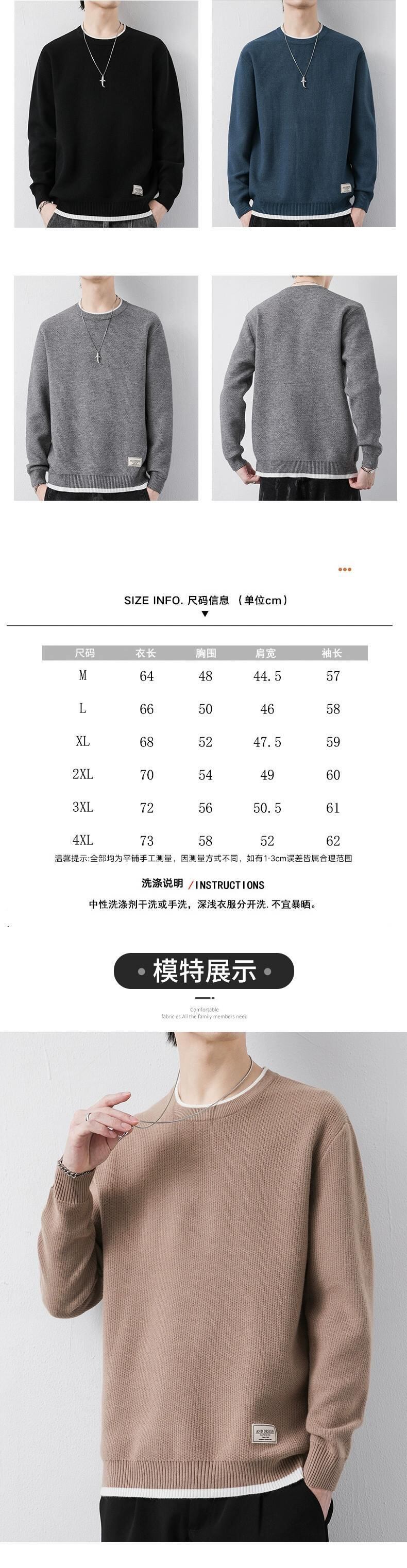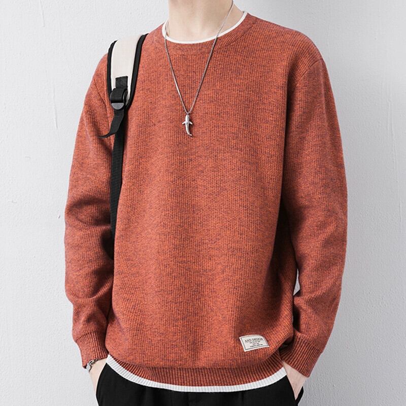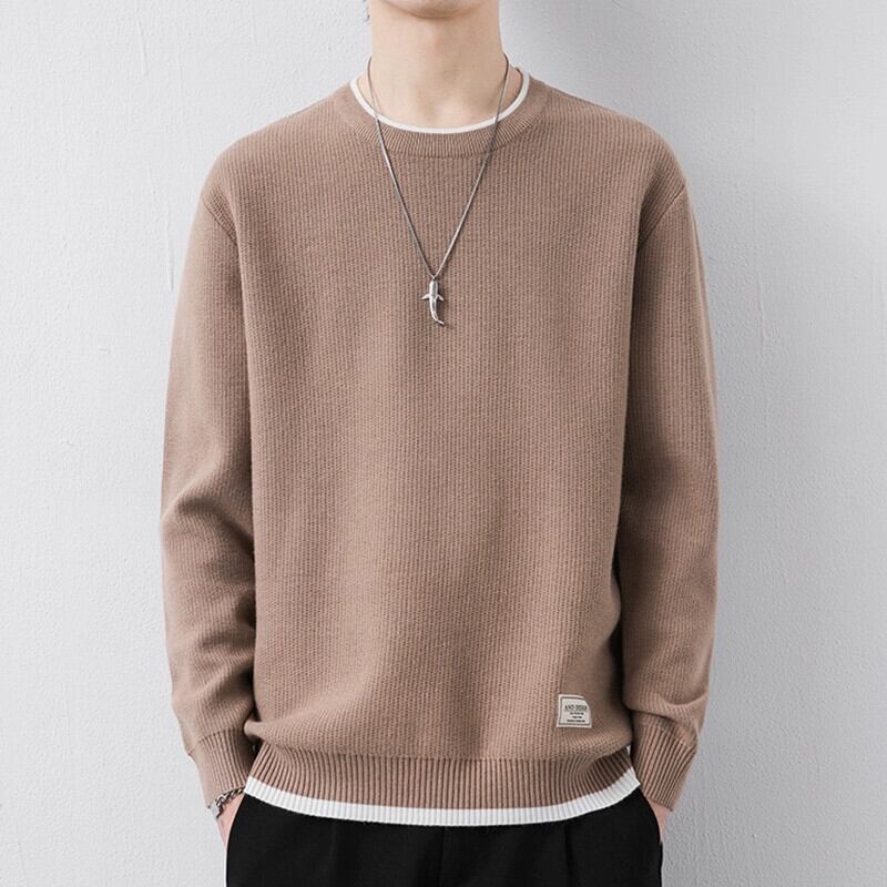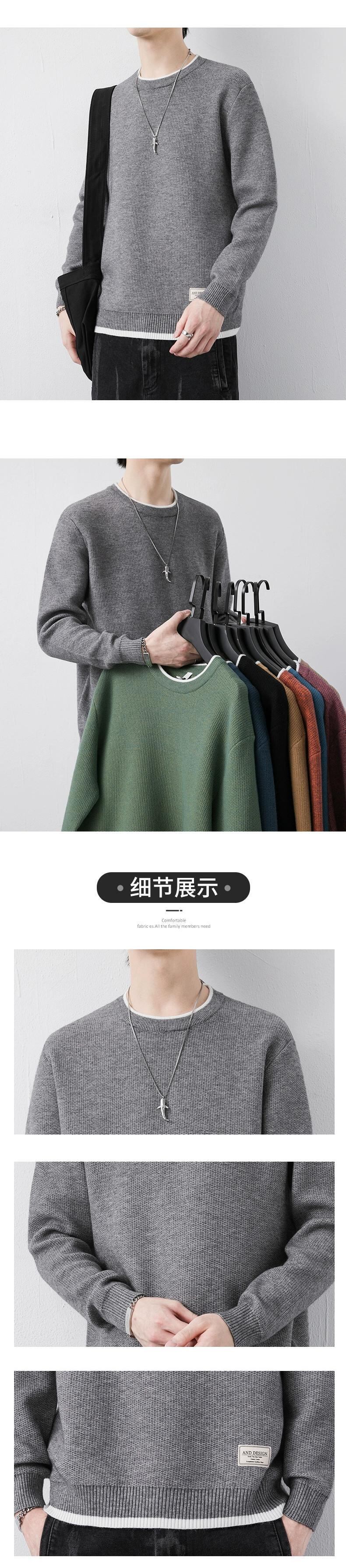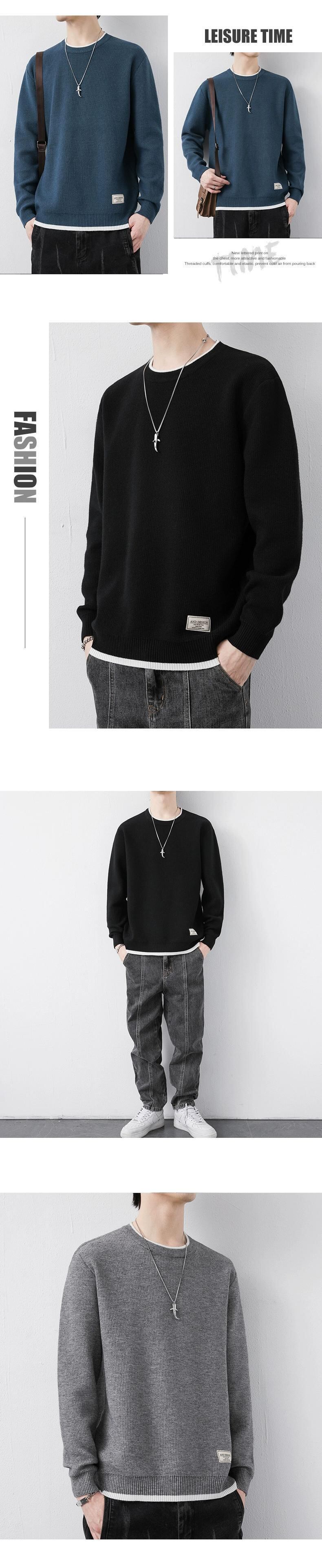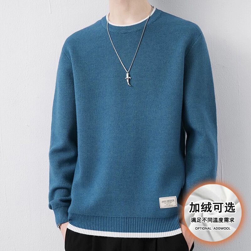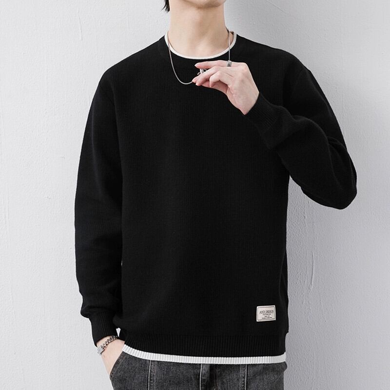 メンズシンプルな雰囲気のラウンドネックボトムニットウェア春と秋の豪華なパッド入り厚いインナートップトレンドセーター スプリング 春物 オータム 秋物 Oネック undao79954995579