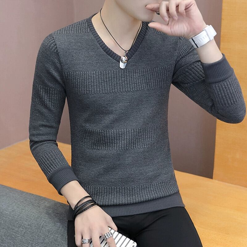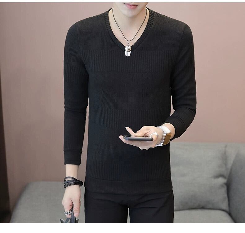 メンズ長袖Tシャツ秋冬新作春秋プラスベルベット肥厚トレンドVネックボトムシャツメンズ冬オールマッチセーター ロング スプリング 春物 オータム 秋物 ウィンター 冬物 undao23981681923