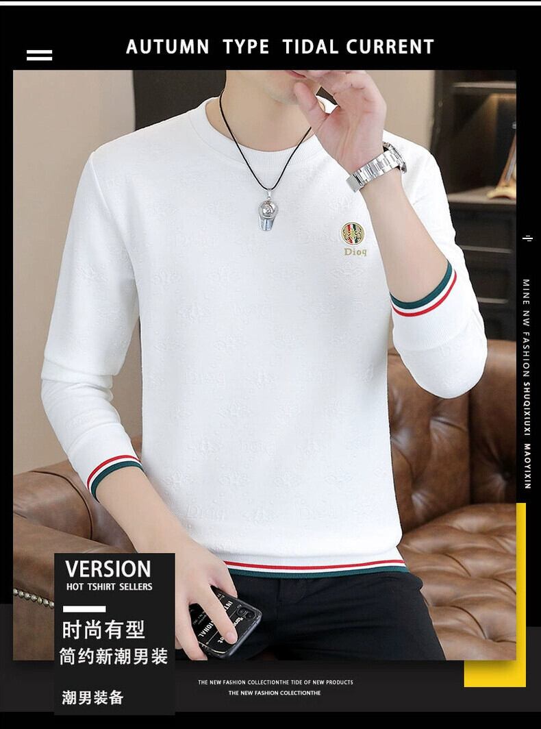 セーターメンズファッション2023春と秋の新しいヨーロッパトレンドカジュアル白長袖Tシャツメンズオールマッチラウンドネック秋服 ロング ホワイト スプリング 春物 オータム 秋物 Oネック ヨーロピアン undao74193406818