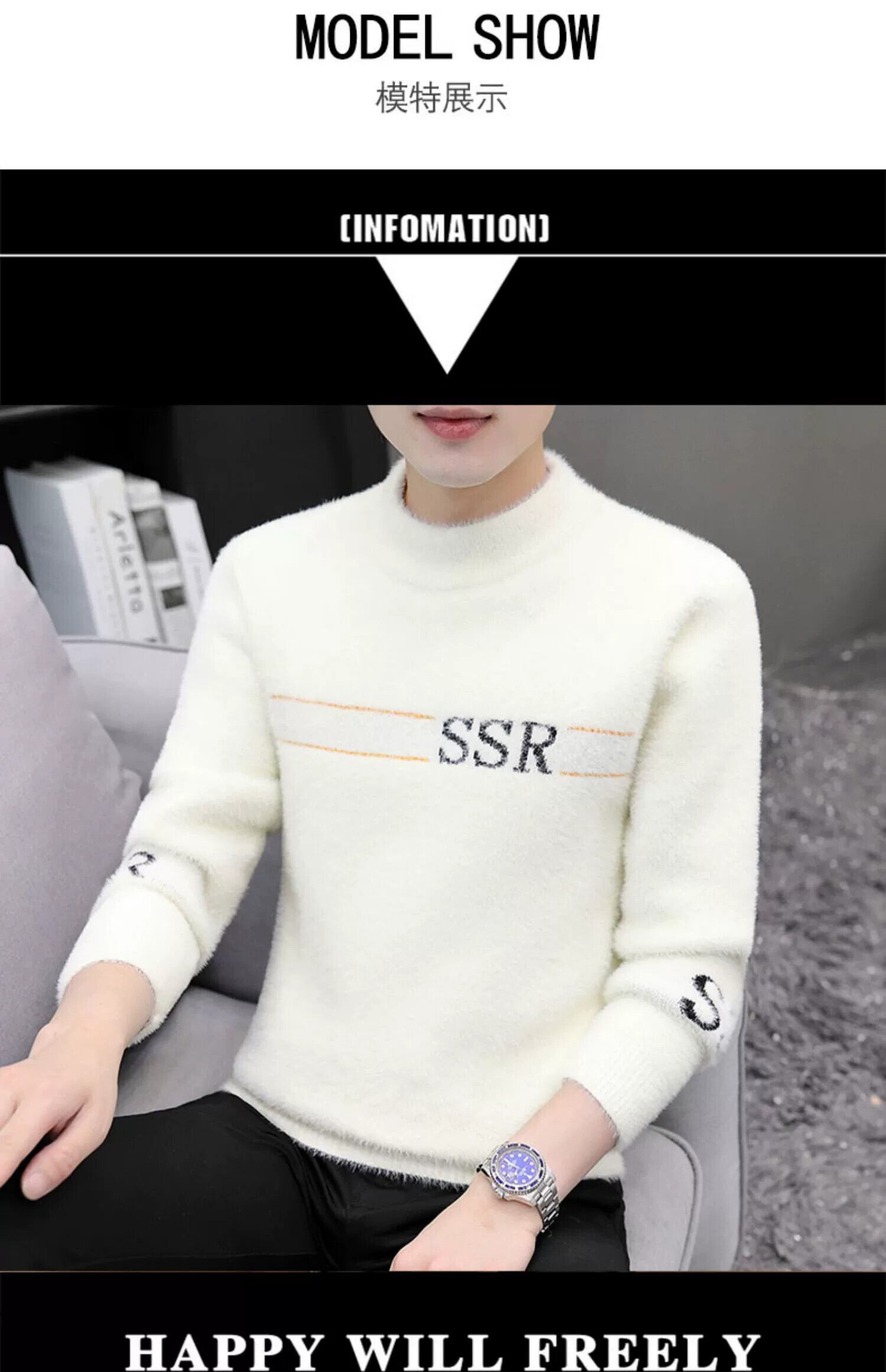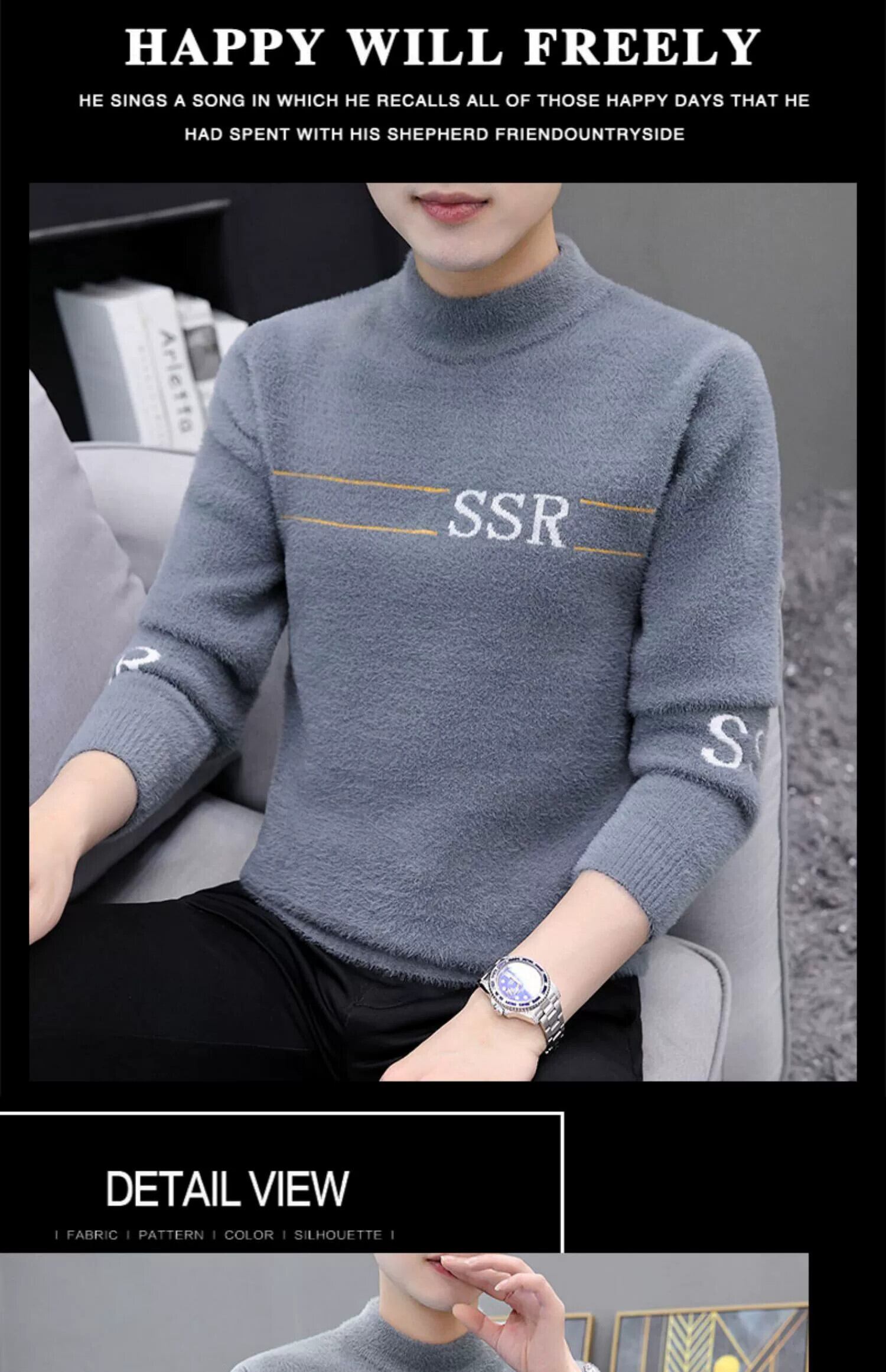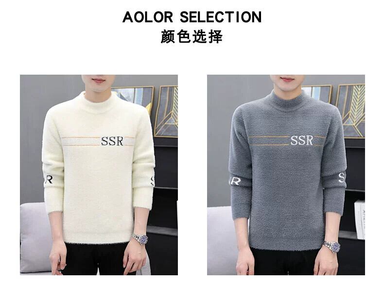 プラスベルベット厚底シャツ 2023 新しいメンズハーフハイカラー暖かいセーター冬模造ミンクウールセーター ウィンター 冬物 undao10124706162