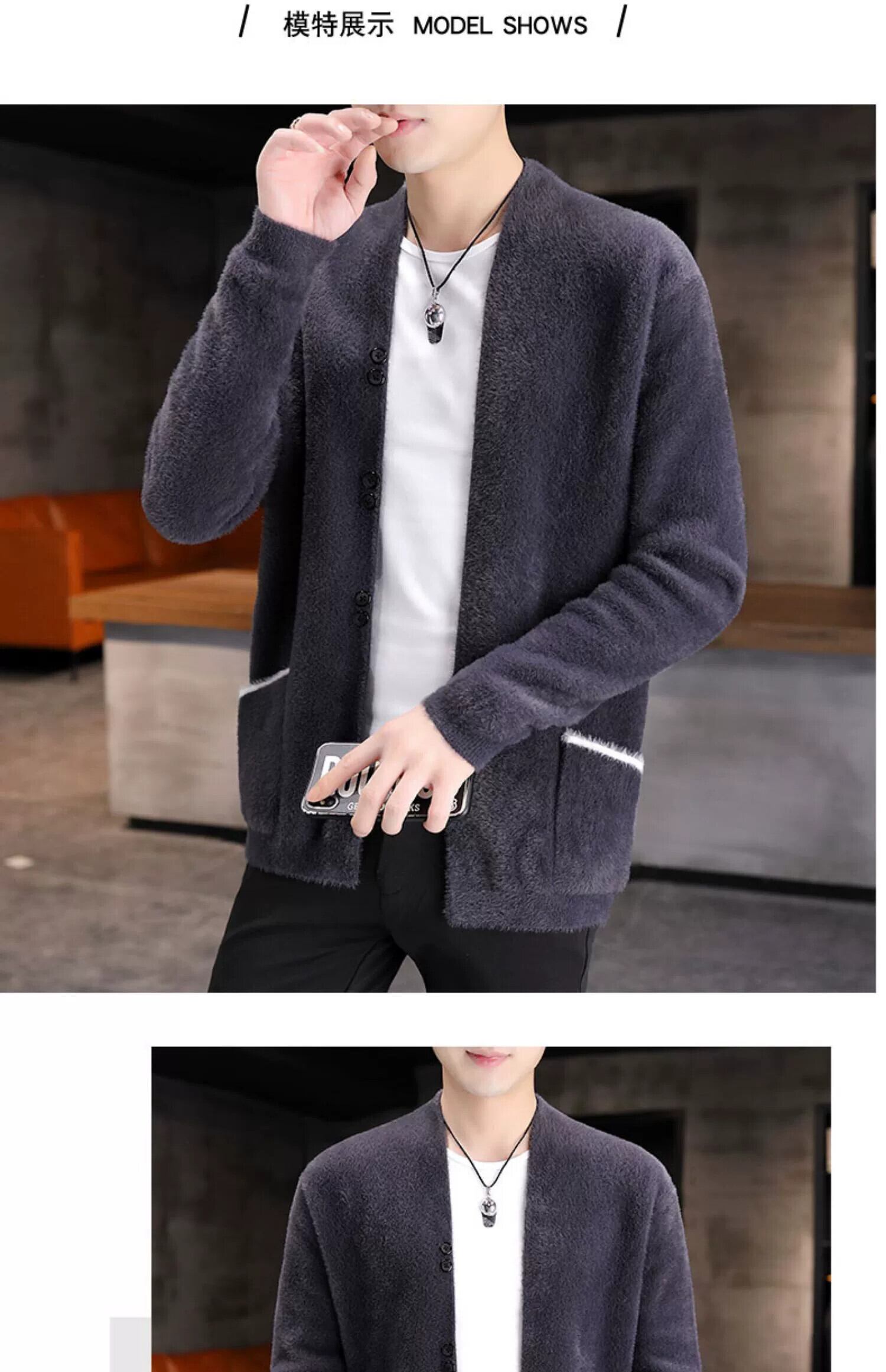 模造ミンクフリース服メンズ肥厚ジッパーカシミアセーターカーディガンコート秋と冬のトレンド若者 オータム 秋物 ウィンター 冬物 undao44436625456