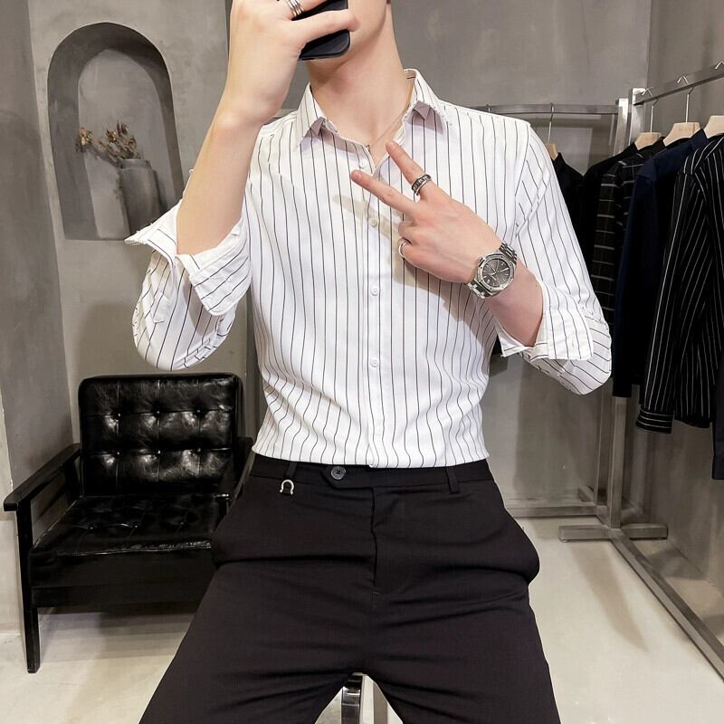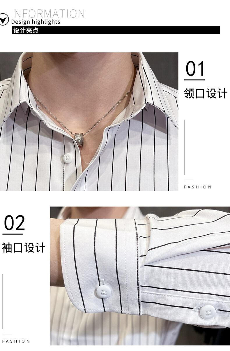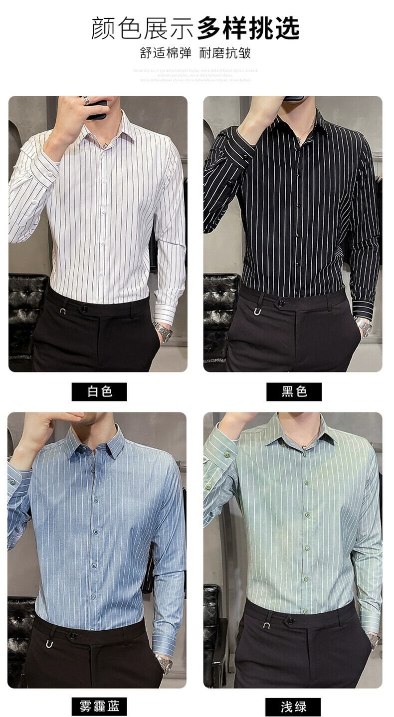 トレンドブランドストライプシャツメンズ長袖2023春秋新作ビジネスカジュアルシャツハイレベルスリムフィットトップ ロング スプリング 春物 オータム 秋物 undao21630840073