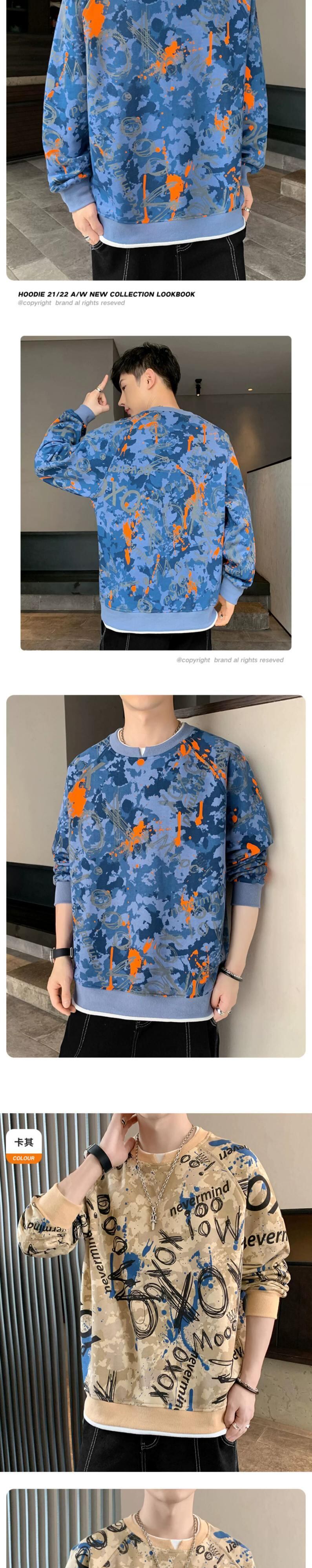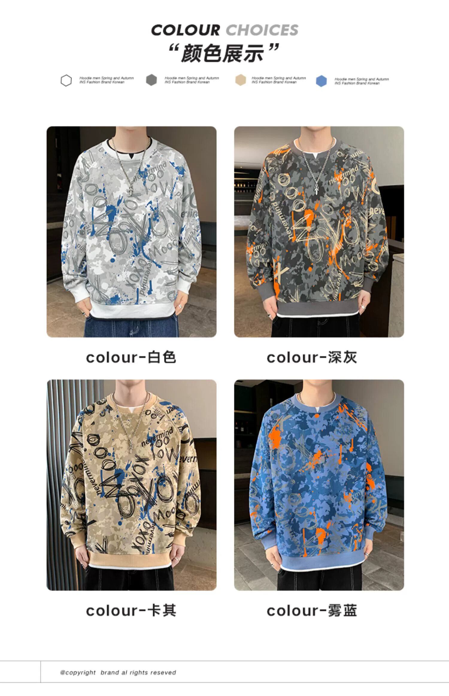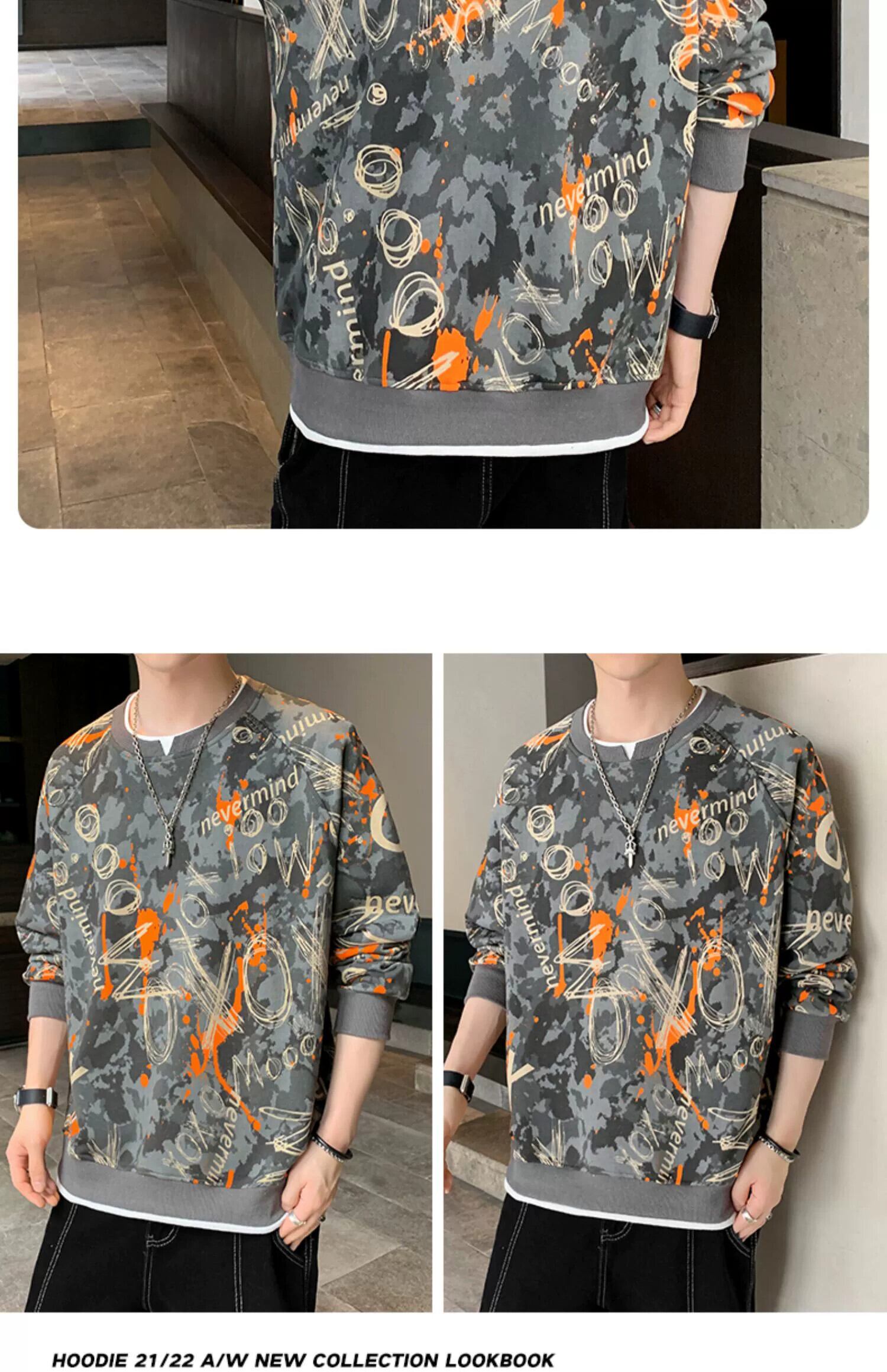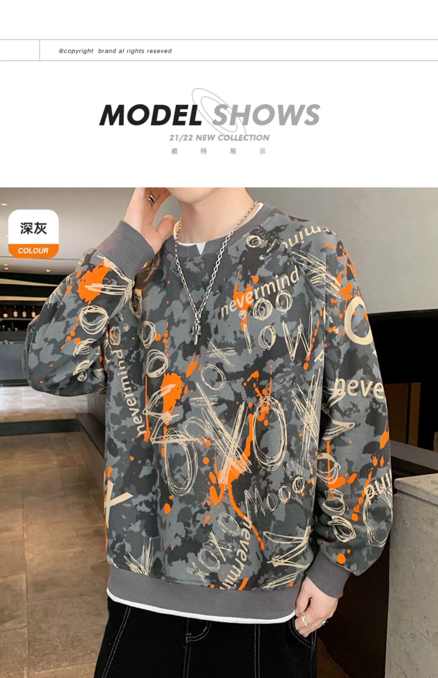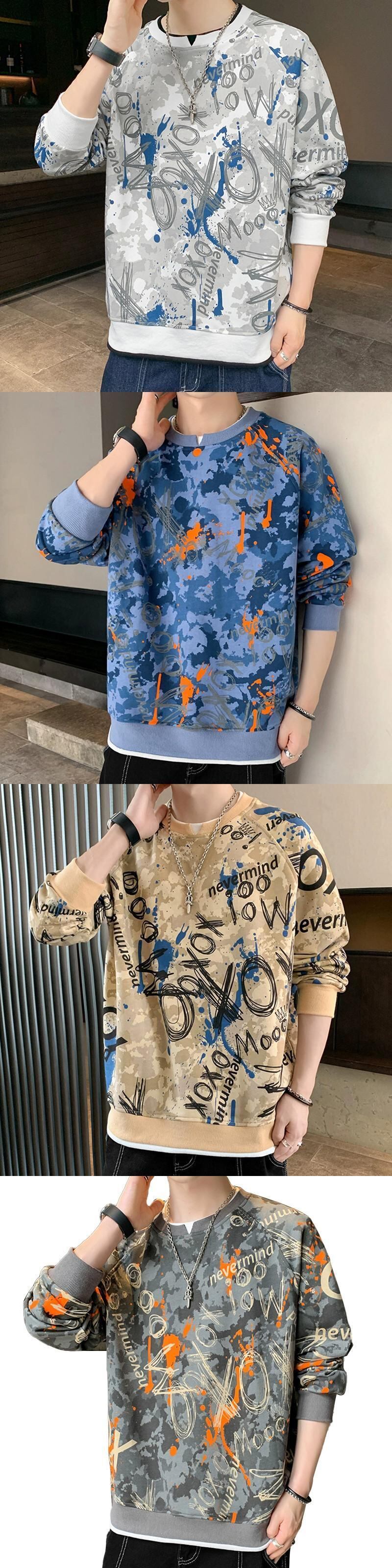 フェイクツーピースセーターメンズ春と秋のトレンディなブランドルーズラウンドネックプルオーバー服ボトリングシャツプリント長袖Tシャツメンズ ロング スプリング 春物 オータム 秋物 Oネック undao49722970296