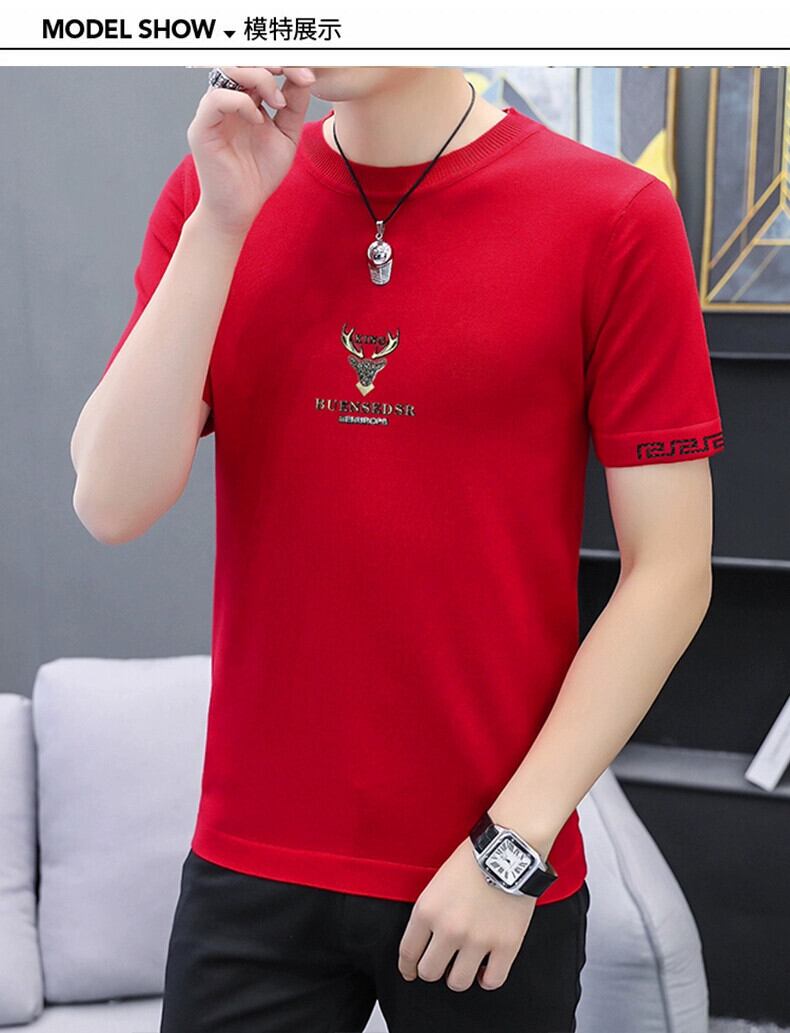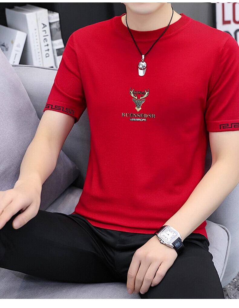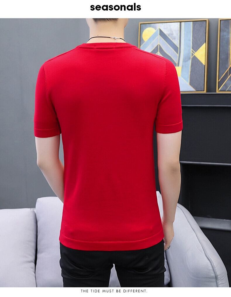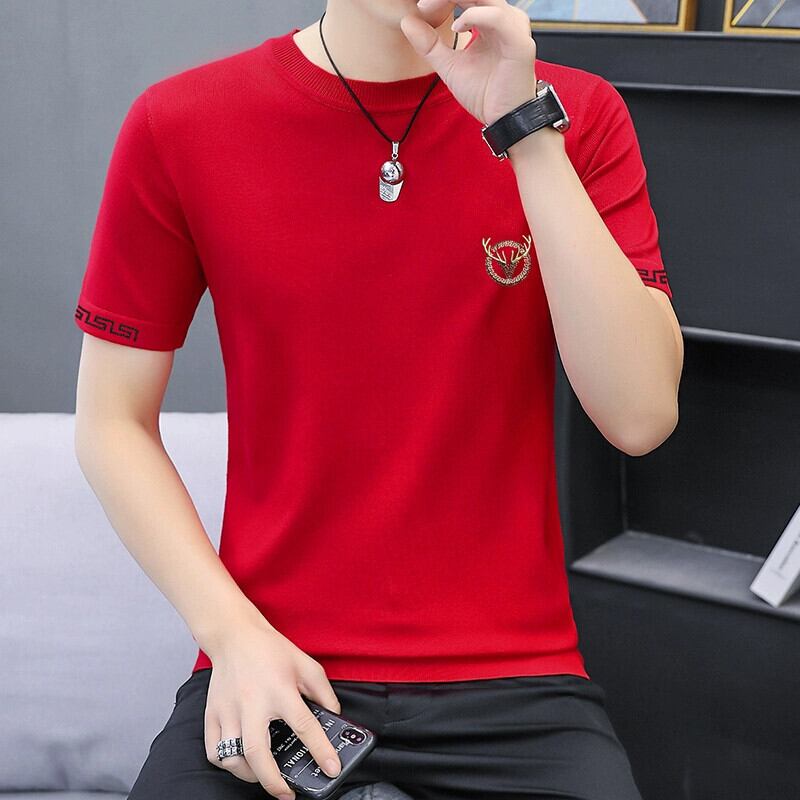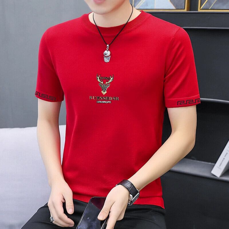 2023 新しいニット半袖干支年赤 Tシャツメンズ春の装飾トップス夏底シャツ Tシャツ レッド スプリング 春物 サマー 夏物 undao47814210252