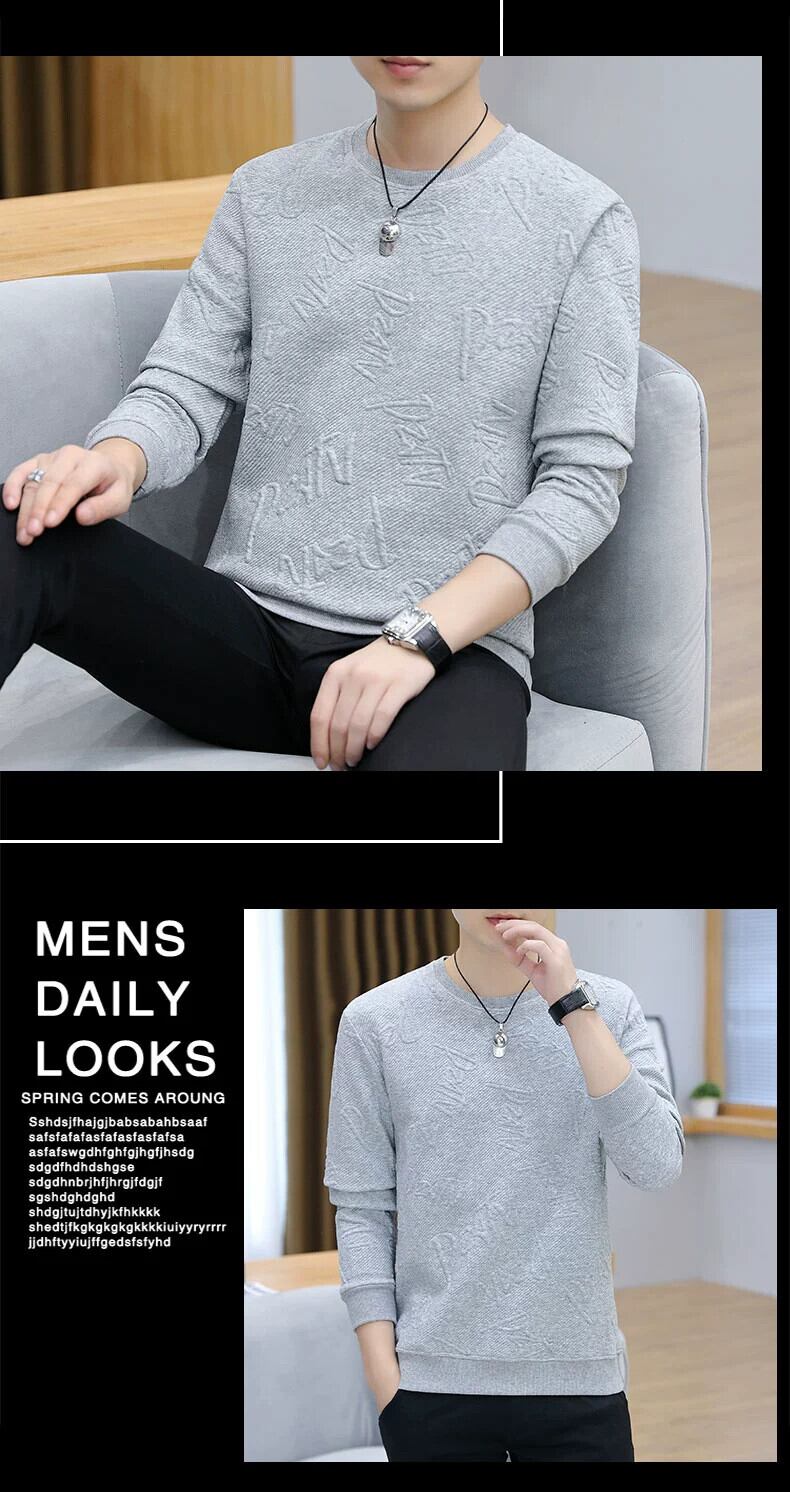ラウンドネックセーターメンズ 2023 春の新トレンドブランドボトリングシャツオールマッチトップ服ルーズトレンディなメンズジャケット スプリング 春物 Oネック undao85723032424