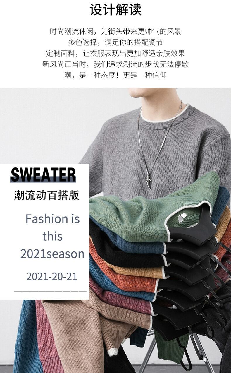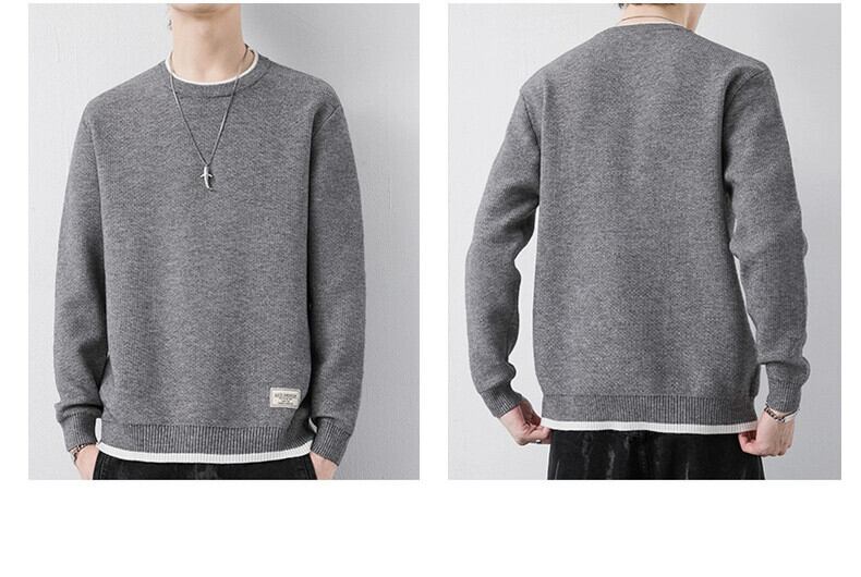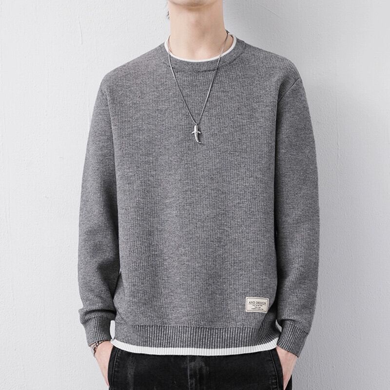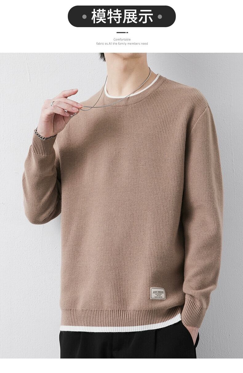 メンズシンプルな雰囲気着用ラウンドネック長袖セーター春秋スモールレーベルインナートップトレンドファッションセーター ロング スプリング 春物 オータム 秋物 Oネック undao68649688274