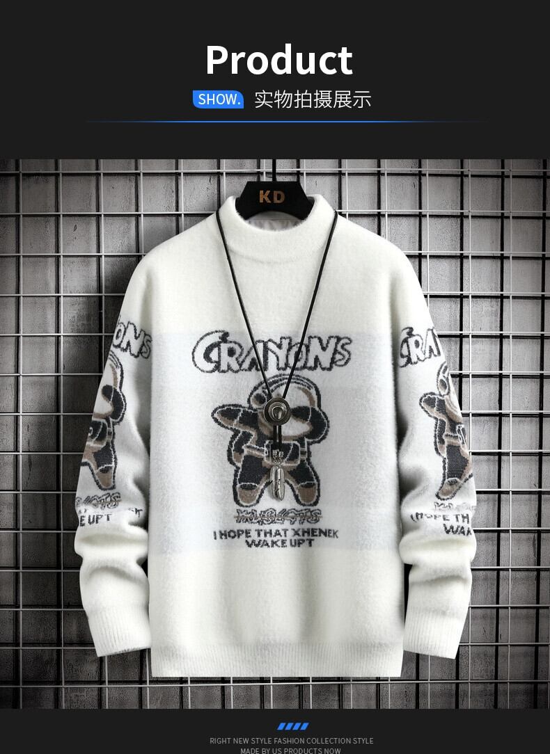 ユースミンクフリースセーターメンズ春秋中学生ニットボトムシャツプラスベルベット肥厚カシミアセーター大きな子供 スプリング 春物 オータム 秋物 undao12805613847