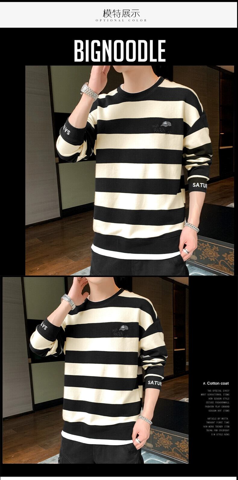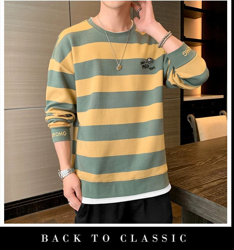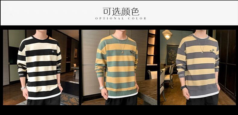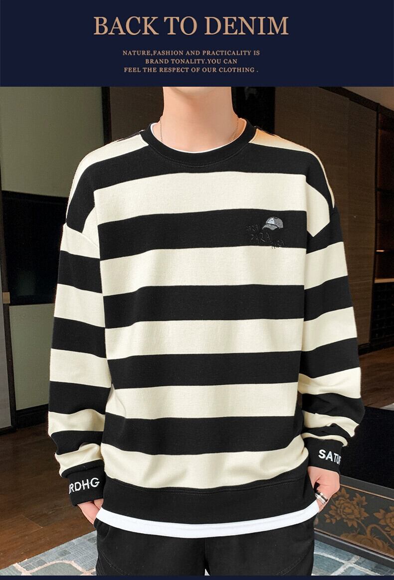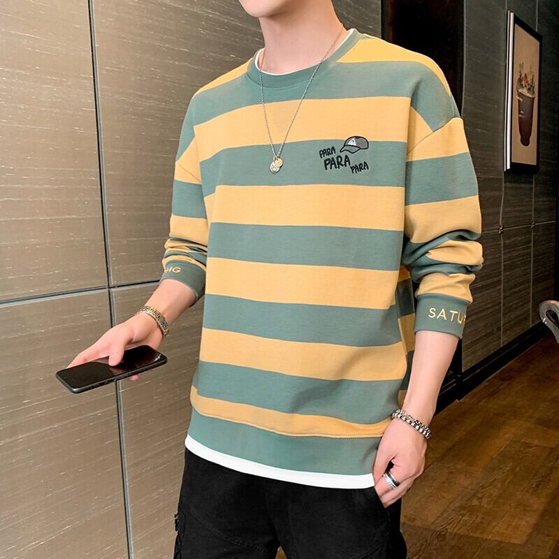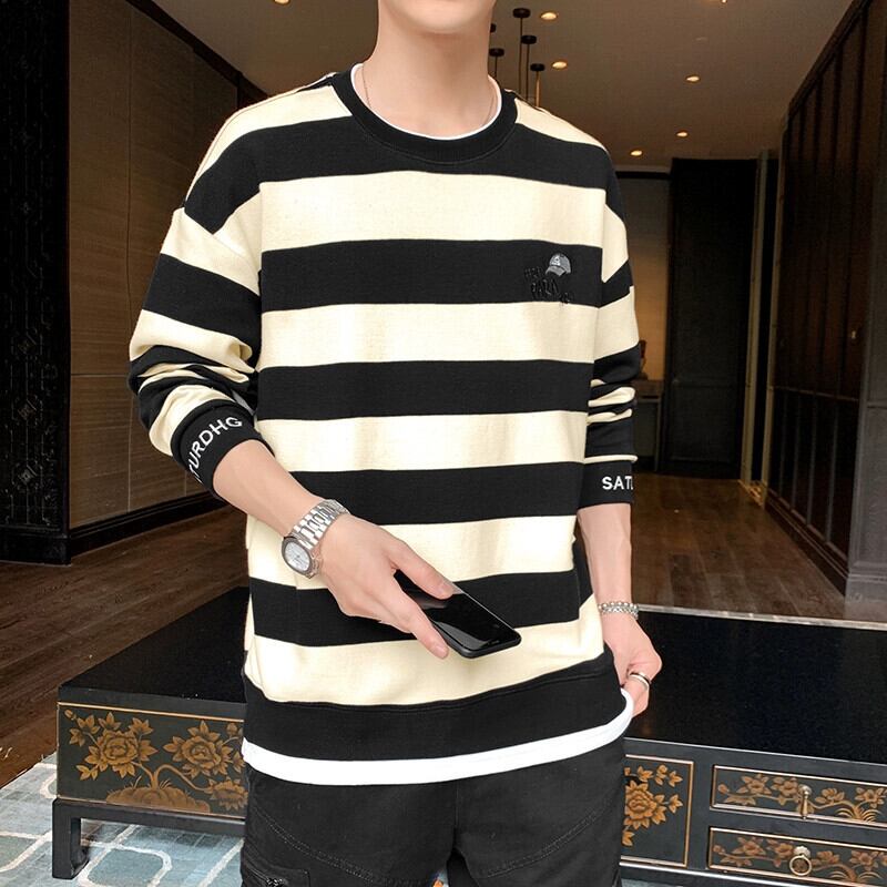セーターメンズピュアコットン長袖Tシャツ2023春と秋の新作メンズオールマッチトレンディなブランドルーズストライプトップ小さなシャツ ロング スプリング 春物 オータム 秋物 undao19062634328