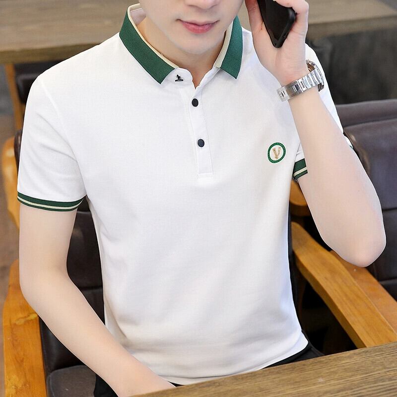 夏の半袖 tシャツメンズトレンドシャツ襟半袖トップ潮ブランドラペルカジュアルポロシャツメンズ tシャツ サマー 夏物 undao45303509162