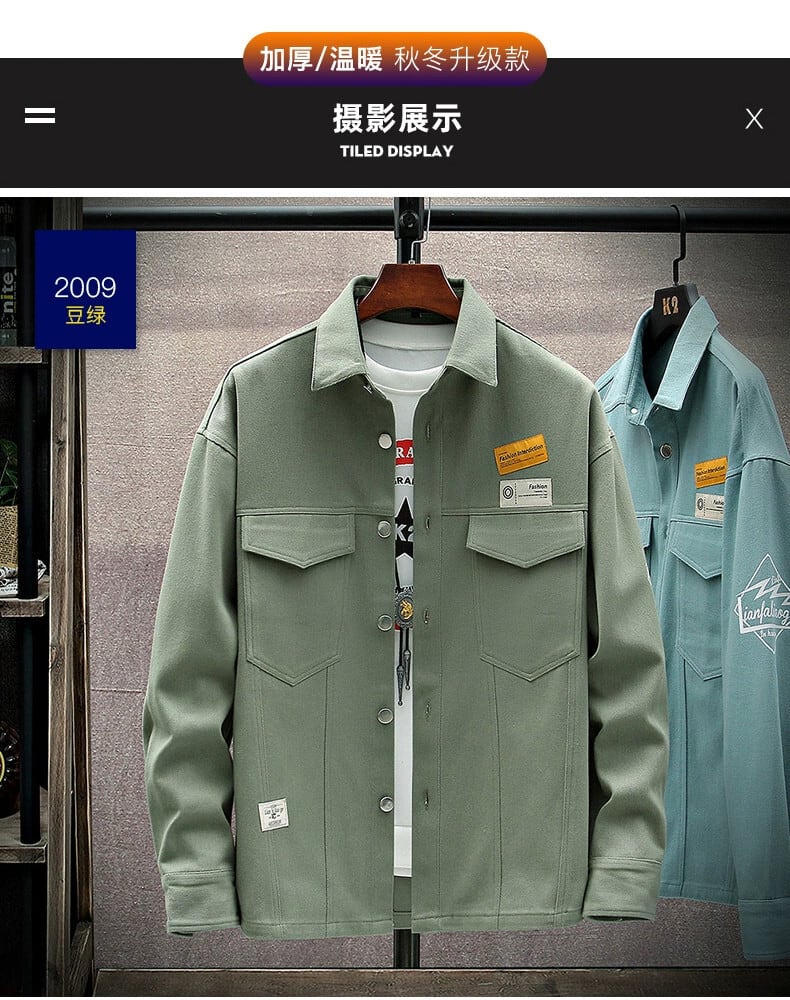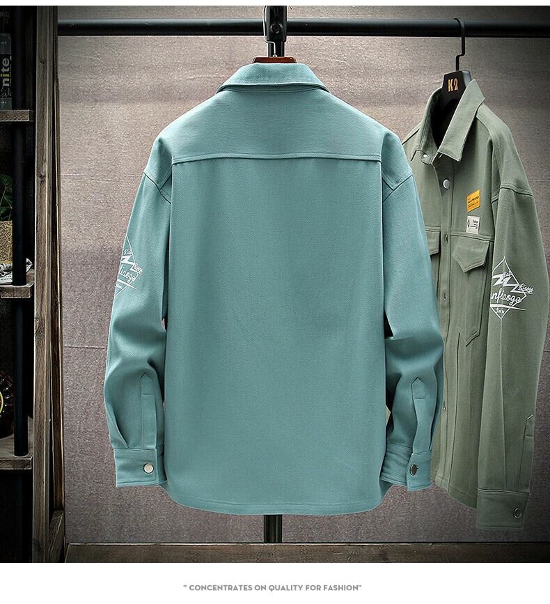 ラペルワークウェアジャケットメンズ春と秋のトレンディなラベル付きデニムシャツメンズジャケットルーズ香港スタイルトップ スプリング 春物 オータム 秋物 undao87602714095