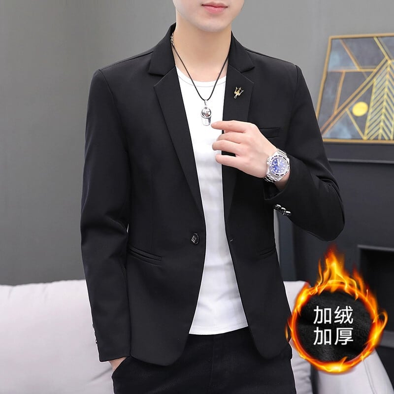 純粋な黒のスーツメンズジャケットカジュアル春と秋のスリムハイエンドマルドレス薄型セクション小さなスーツのシングルトップバージョン ブラック スプリング 春物 オータム 秋物 undao76507825456
