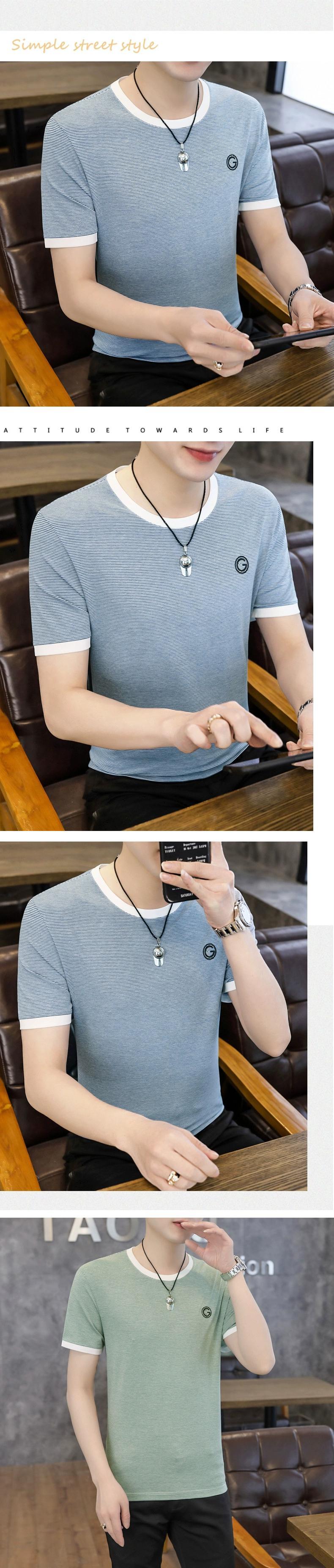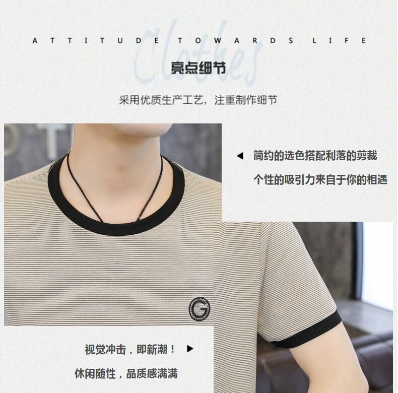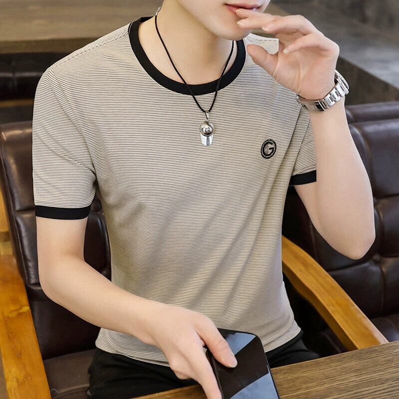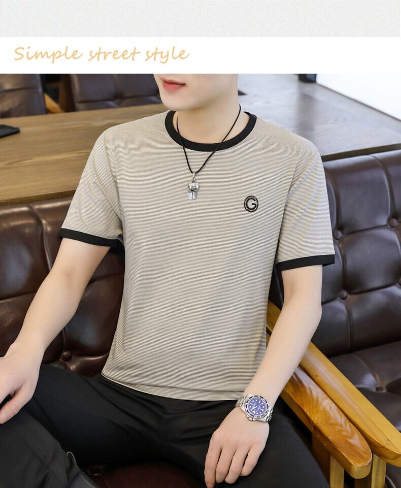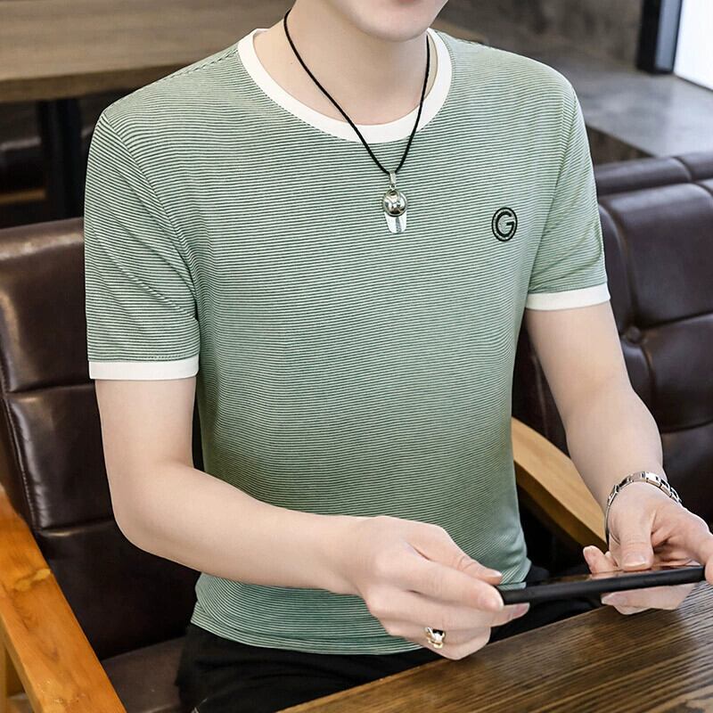 ストライプ半袖 Tシャツメンズ夏ラウンドネックアイスセンス半袖バージョンのトレンドインスリムアイスシルク Tシャツトップス服 サマー 夏物 Oネック undao44234623338