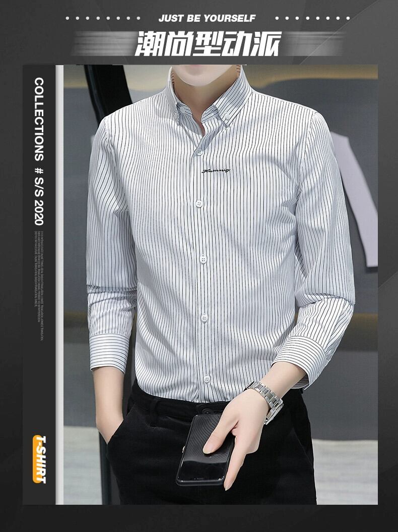 長袖シャツメンズ春秋スタイル高級ストライプ白シャツ春服カジュアルハンサム1インチシャツコート ロング ホワイト スプリング 春物 オータム 秋物 undao24942033693