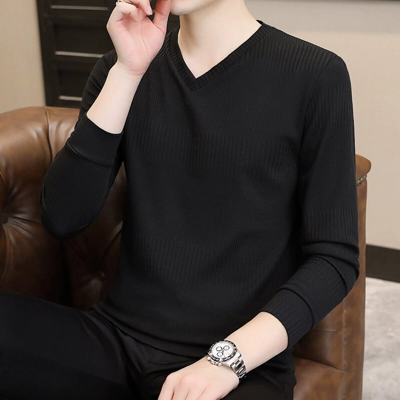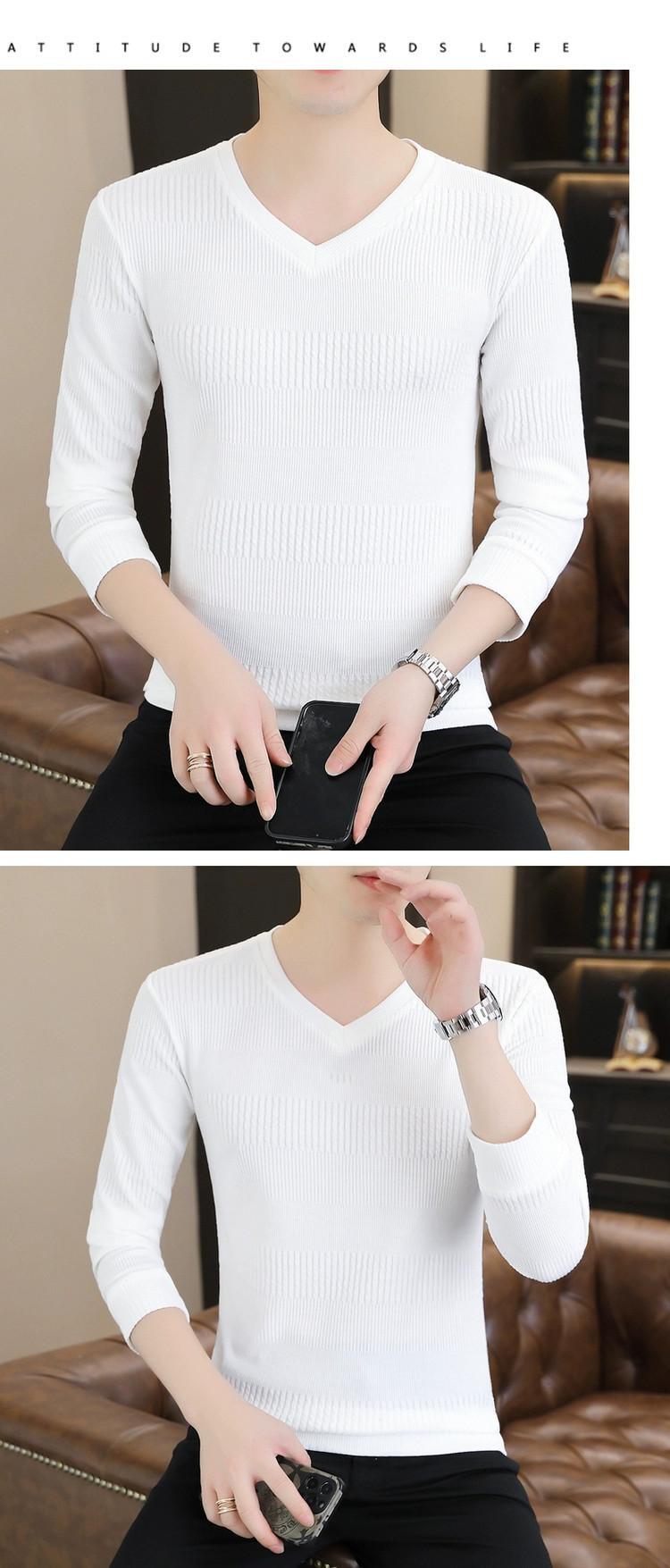 メンズ長袖Tシャツ春と秋のトレンドカジュアル無地オールマッチVネックボトムシャツメンズフリース肥厚Tシャツトップ ロング スプリング 春物 オータム 秋物 ソリッドカラー undao98753642698