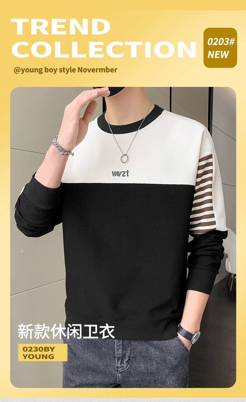 セーターメンズ春秋ラウンドネックボトムシャツ2023新作春秋厚手の長袖Tシャツルーズトップ ロング スプリング 春物 オータム 秋物 Oネック undao95484705553