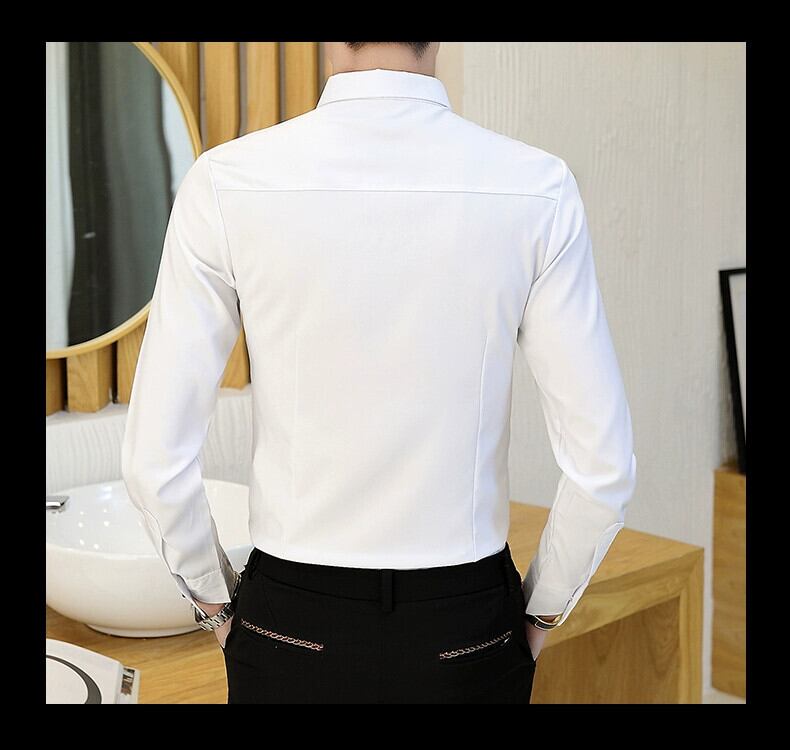 春夏 白シャツ メンズ 長袖 スリム メンズシャツ ビジネス カジュアル 男前 シワになりにくい アイロンシャツ トレンド ロング ホワイト スプリング 春物 サマー 夏物 undao51438503492