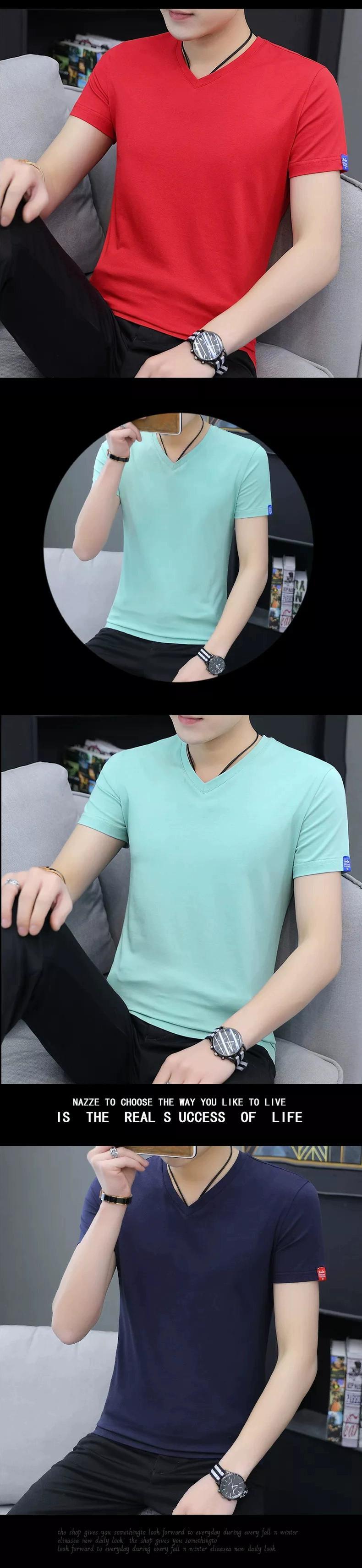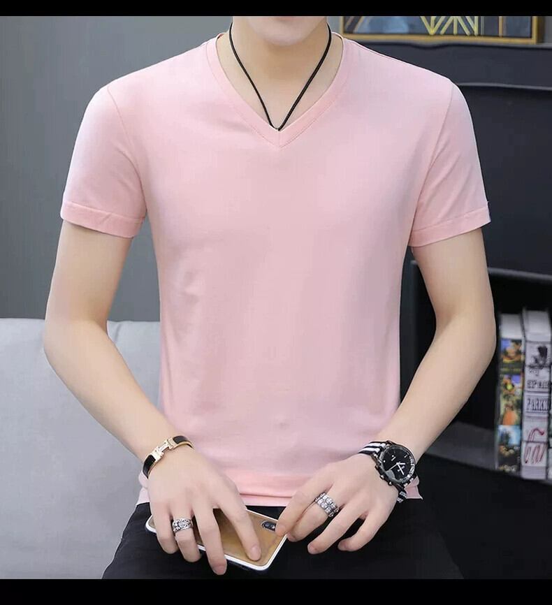 メンズ半袖 Tシャツ V ネック夏ピュアコットンピンクスリムフィットアイスシルク半袖メンズ Tシャツ恋人襟トレンディな紳士服 大人ガーリー スウィート キュート カジュアル サマー 夏物 Vネック undao18566425193
