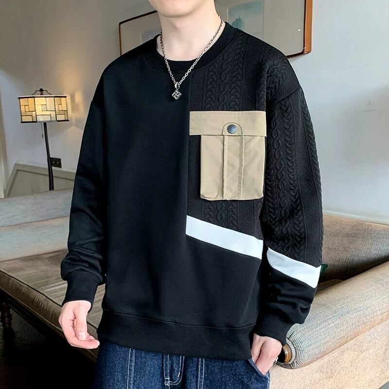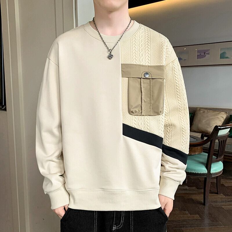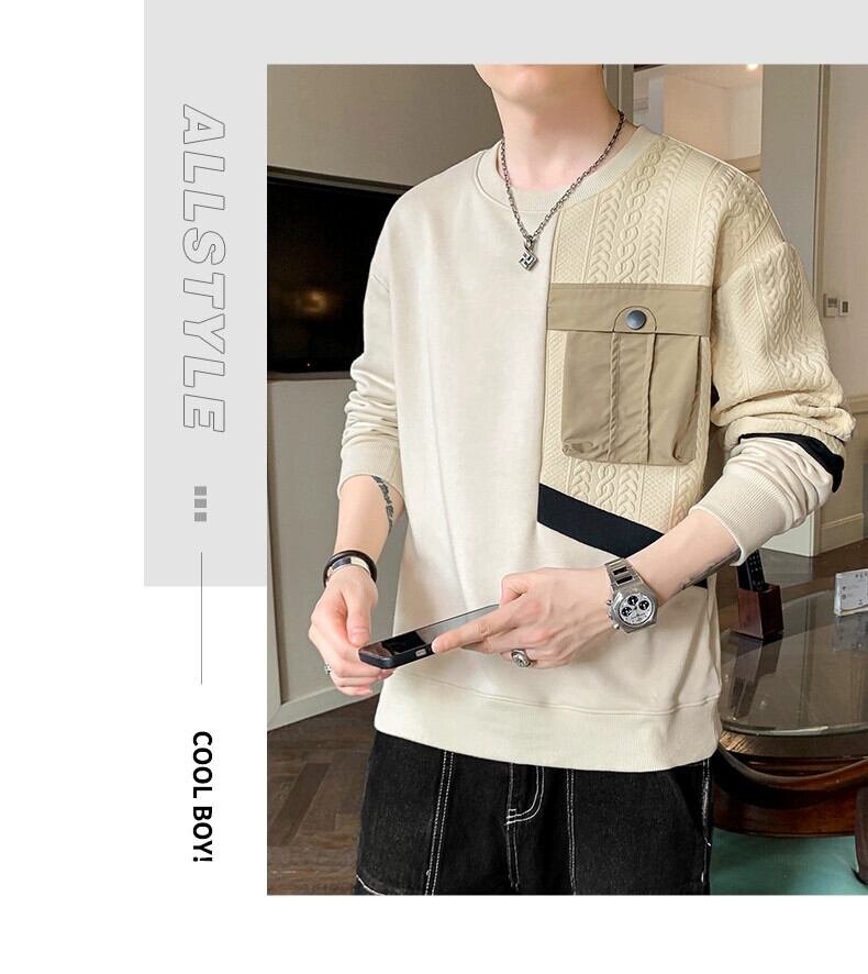 ステッチセーターメンズ春と秋のトレンドインカジュアルルーズ秋服ボトリングシャツ若者ハンサム長袖Tシャツ ロング スプリング 春物 オータム 秋物 undao35046582489
