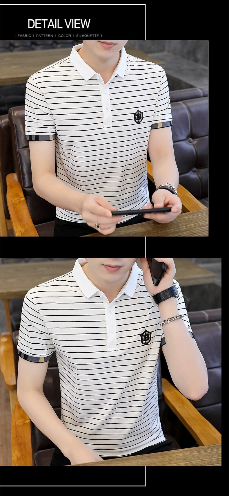 ストライプ半袖 Tシャツメンズ夏のトレンディなブランドインオールマッチメンズコットンラペルポロシャツアイスシルク半袖トップ服 サマー 夏物 undao46359155082