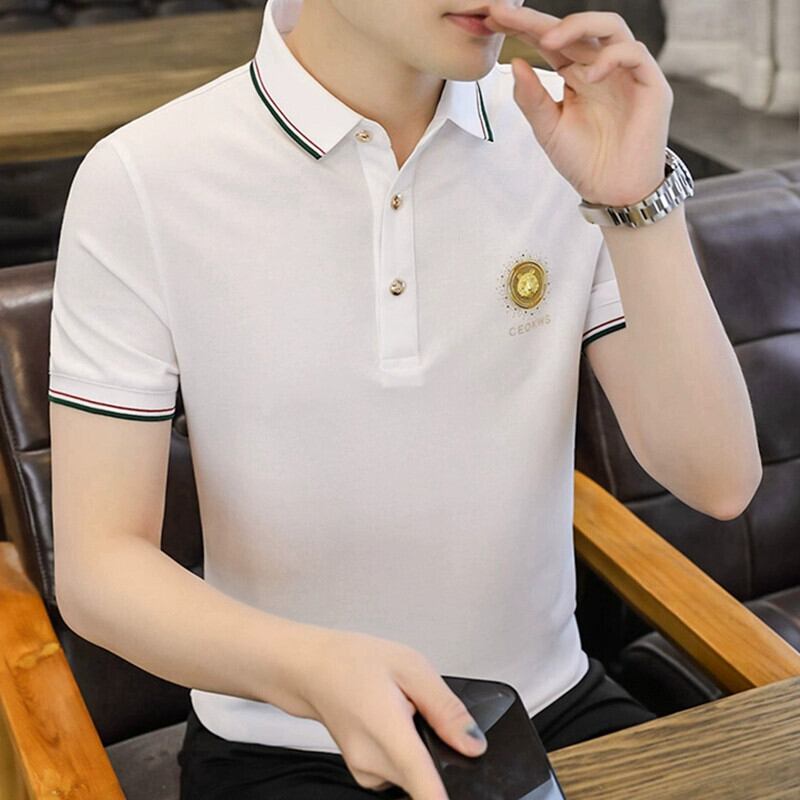 半袖Tシャツ メンズ 夏 トレンドシャツ ラペルポロ ユース ビジネス ピケ コットン レッド 五分袖Tシャツ T サマー 夏物 undao28841099856