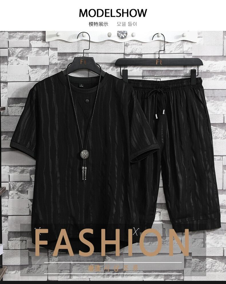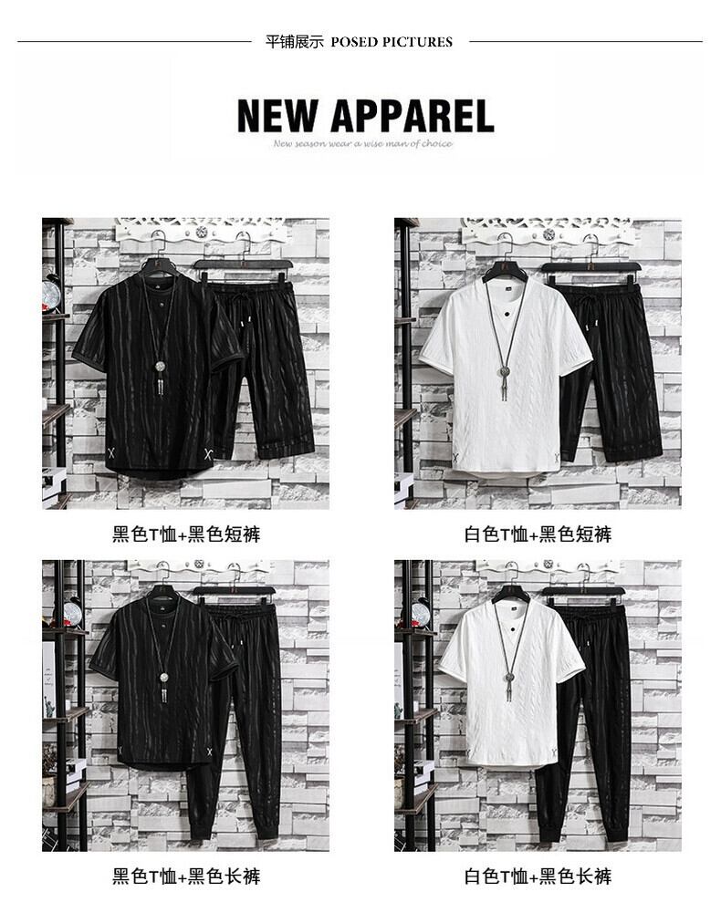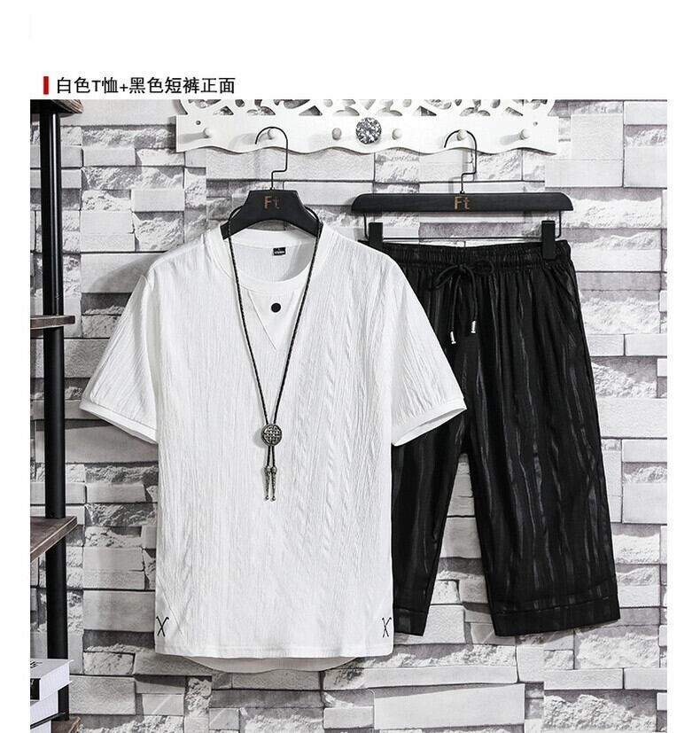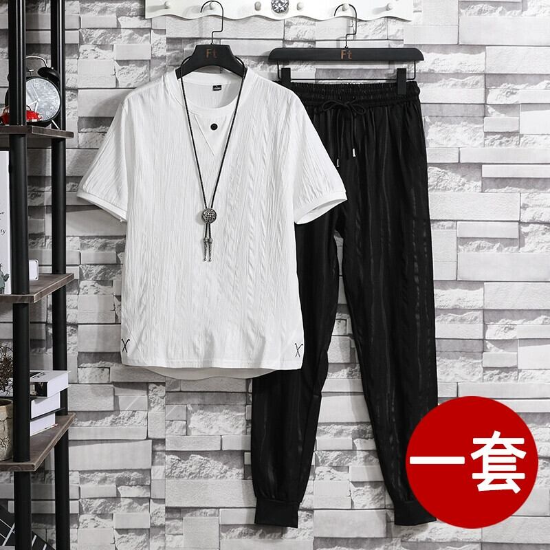 アイスシルクスーツメンズ 2023 新作夏悪党ハンサムカジュアルトレンド薄地半袖紳士服セット サマー 夏物 undao5673067050