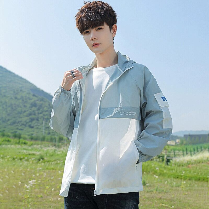 日焼け防止服メンズ超薄皮服通気性速乾ウインドブレーカージャケットハンサムなフード付きアイスシルクアウトドアスポーツジャケットトレンディ undao41940968748