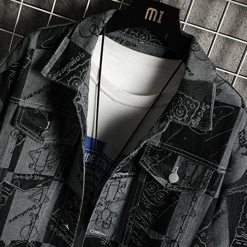 ツーリング デニム ジャケット メンズ 春と秋の新作 カジュアル ハンサム アメリカン スタイル ルーズ ジャケット メンズ トレンド ブランド ブラック ガウン スプリング 春物 オータム 秋物 undao71129044576