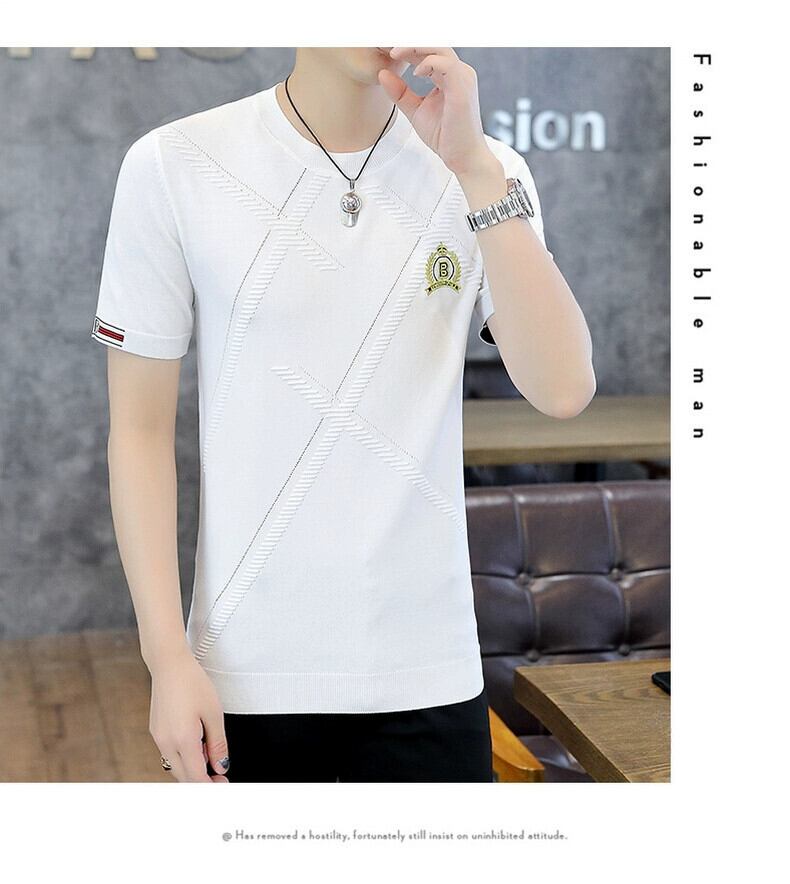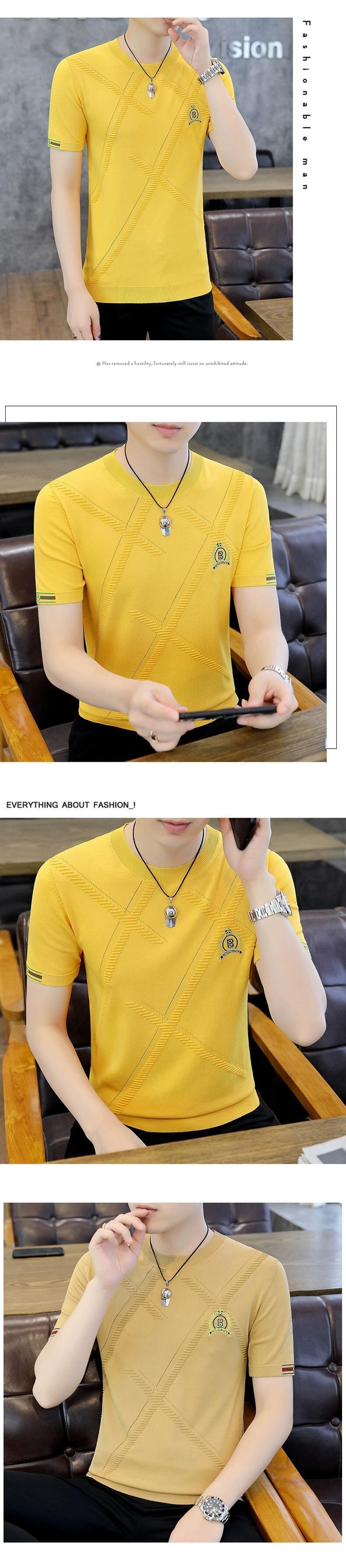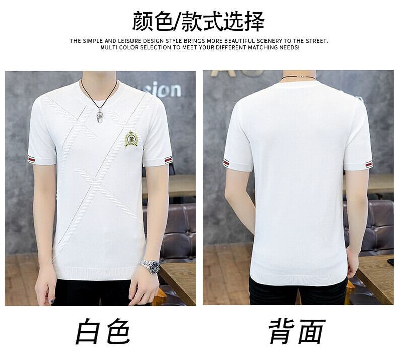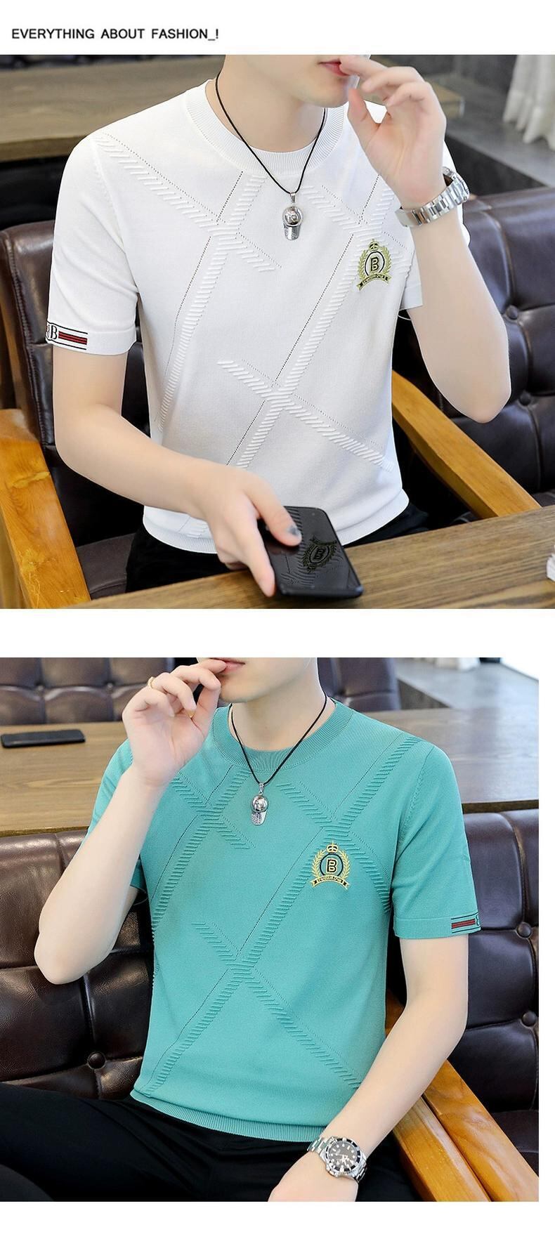 ソリッドカラー 2023 新しいニット半袖 Tシャツメンズ夏のハイエンドスリムアイスシルクラウンドネックカジュアル Tシャツトレンド サマー 夏物 Oネック undao98284929065