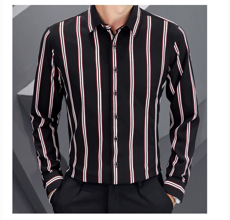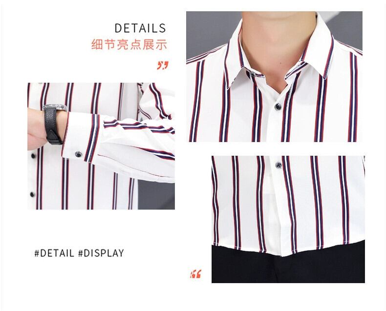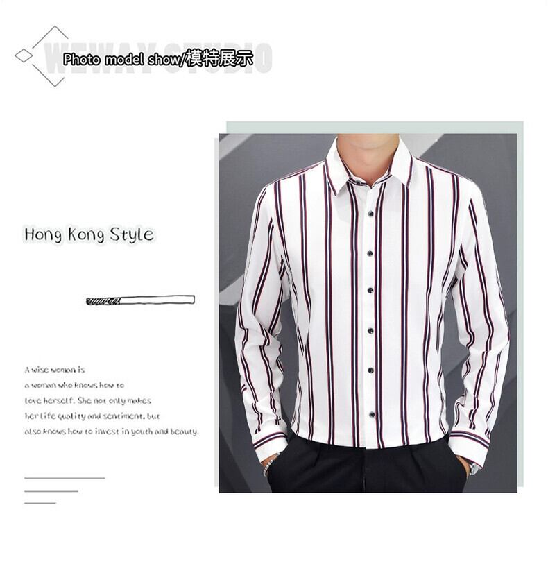 -endメンズカジュアル長袖シャツ春秋スタイルトレンディスリムストライプシャツ潮ブランド春トップ薄い ロング スプリング 春物 オータム 秋物 undao49277229263