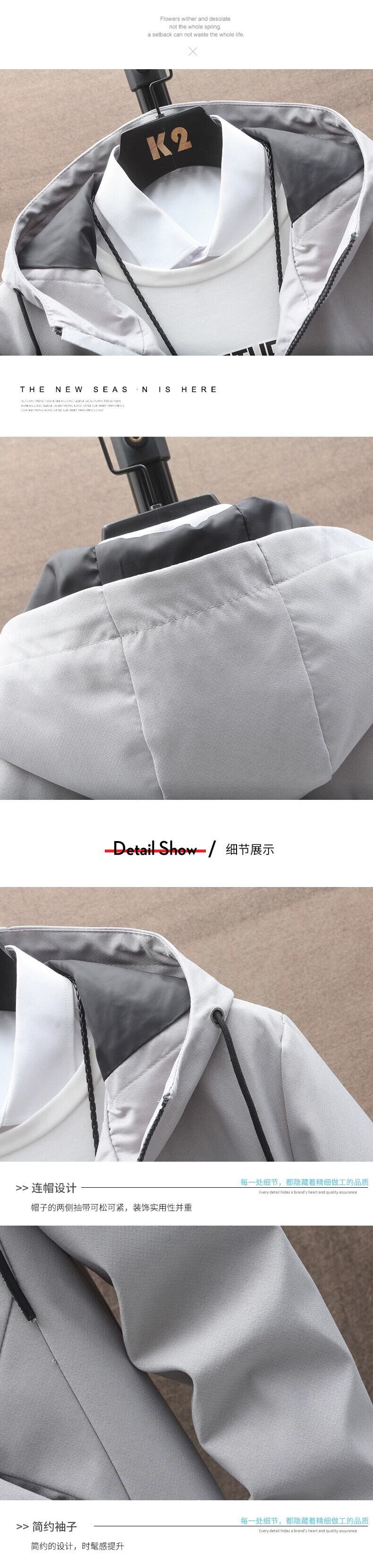 メンズジャケット秋2023新しいメンズジャケットバージョン薄いセクションカジュアルフード付き春と秋のミドル丈ウインドブレーカー スプリング 春物 オータム 秋物 undao69592599428