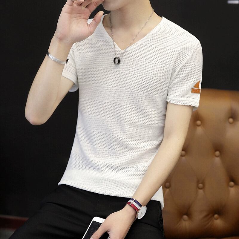 2023 新しい夏のアイスシルク半袖 Tシャツメンズ潮ブランドハイエンドマルベリーシルク V ネック Tシャツメンズボトシャツ薄い サマー 夏物 Vネック undao24082034021
