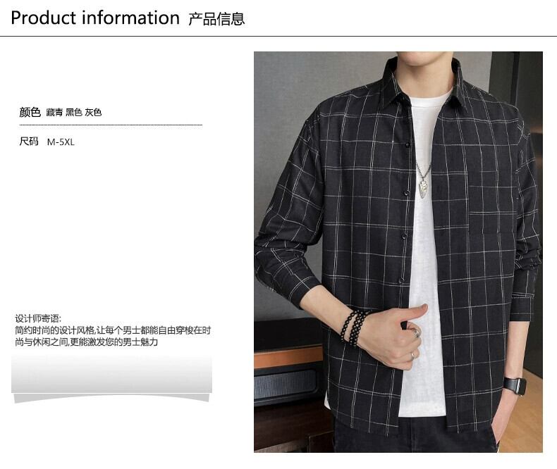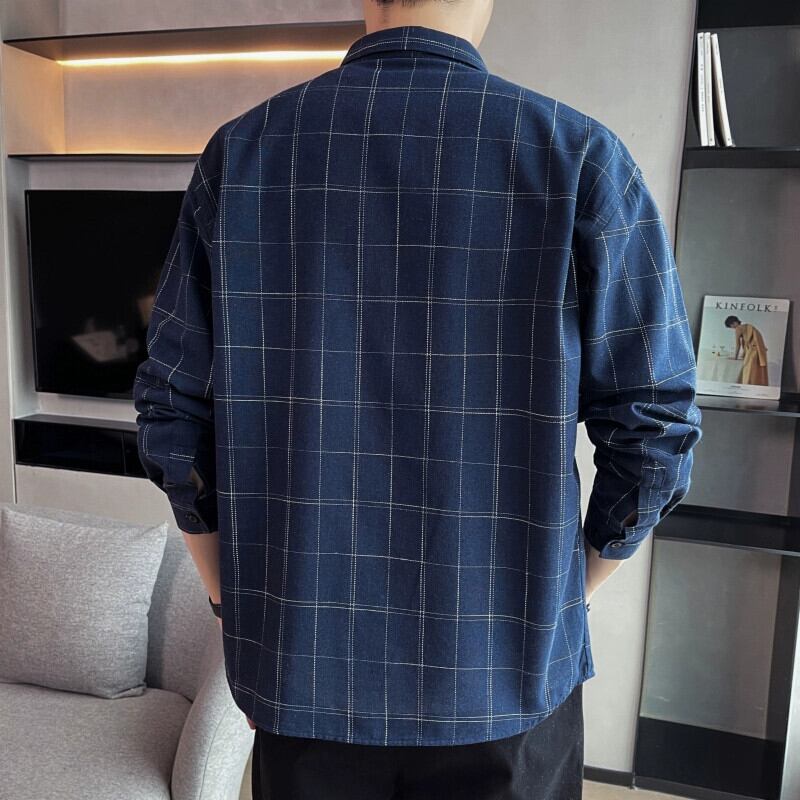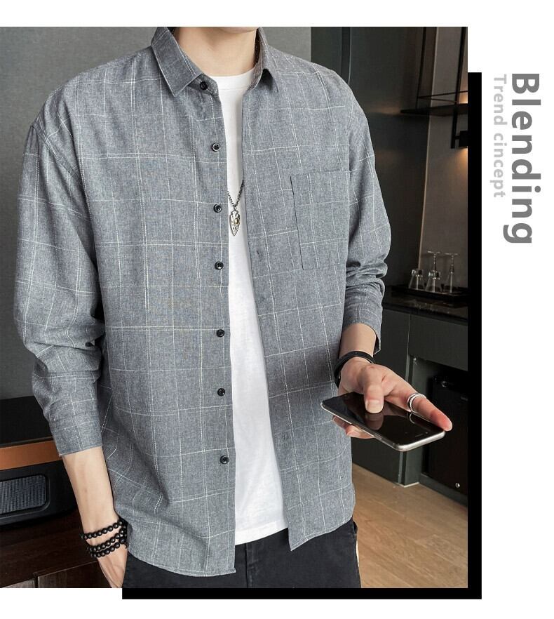 香港スタイルのトレンド春チェック柄シャツメンズカジュアル春秋長袖ジャケットティーンエイジャーメンズトップトレンディブランドシャツ ロング スプリング 春物 オータム 秋物 undao59606527047