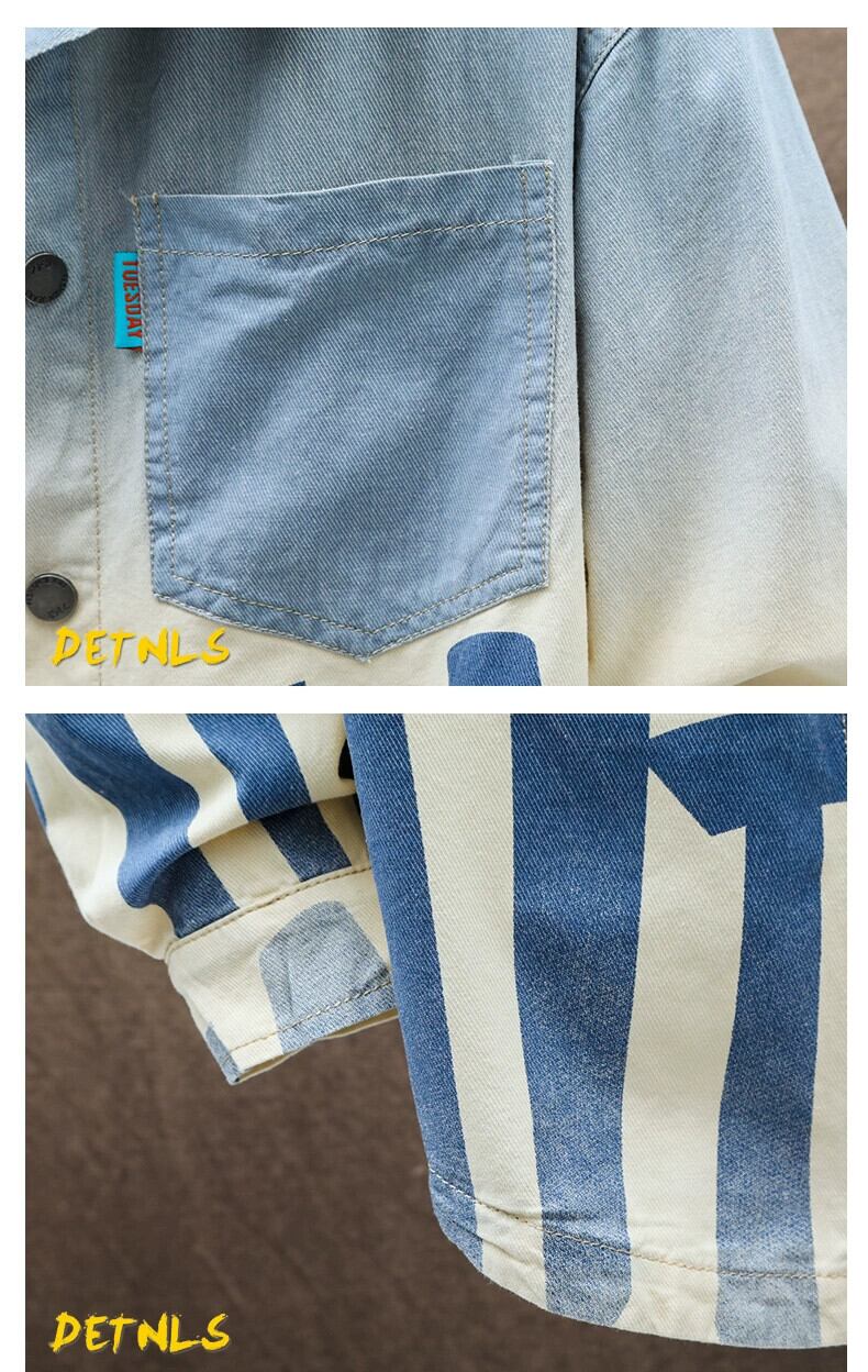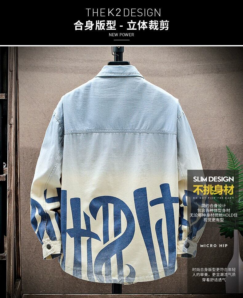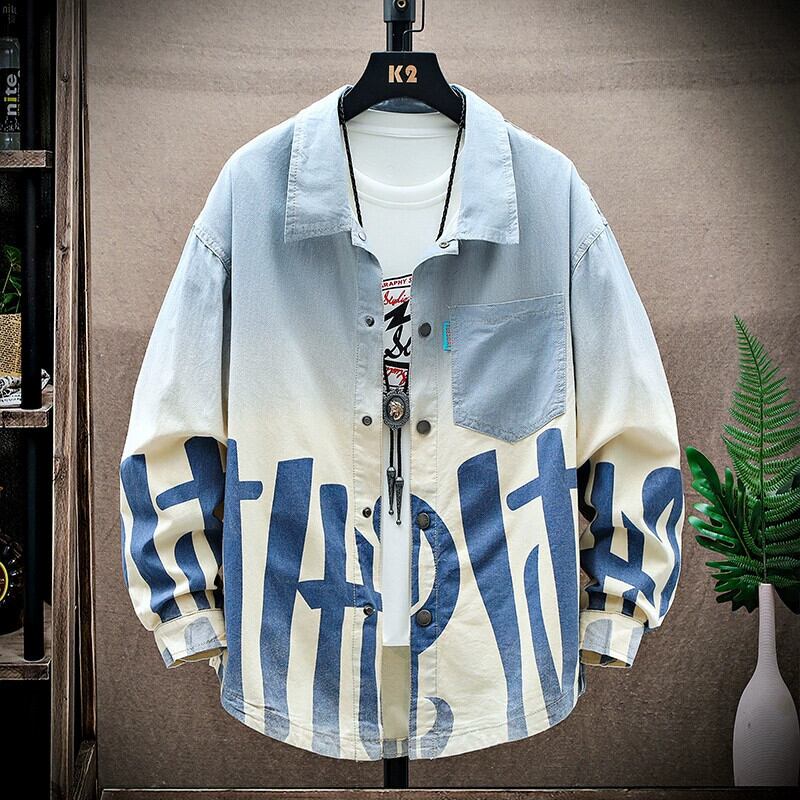 デニム長袖シャツメンズ春秋ユース潮ブランドルーズシャツ中高生トレンドコート ロング スプリング 春物 オータム 秋物 undao11945310911